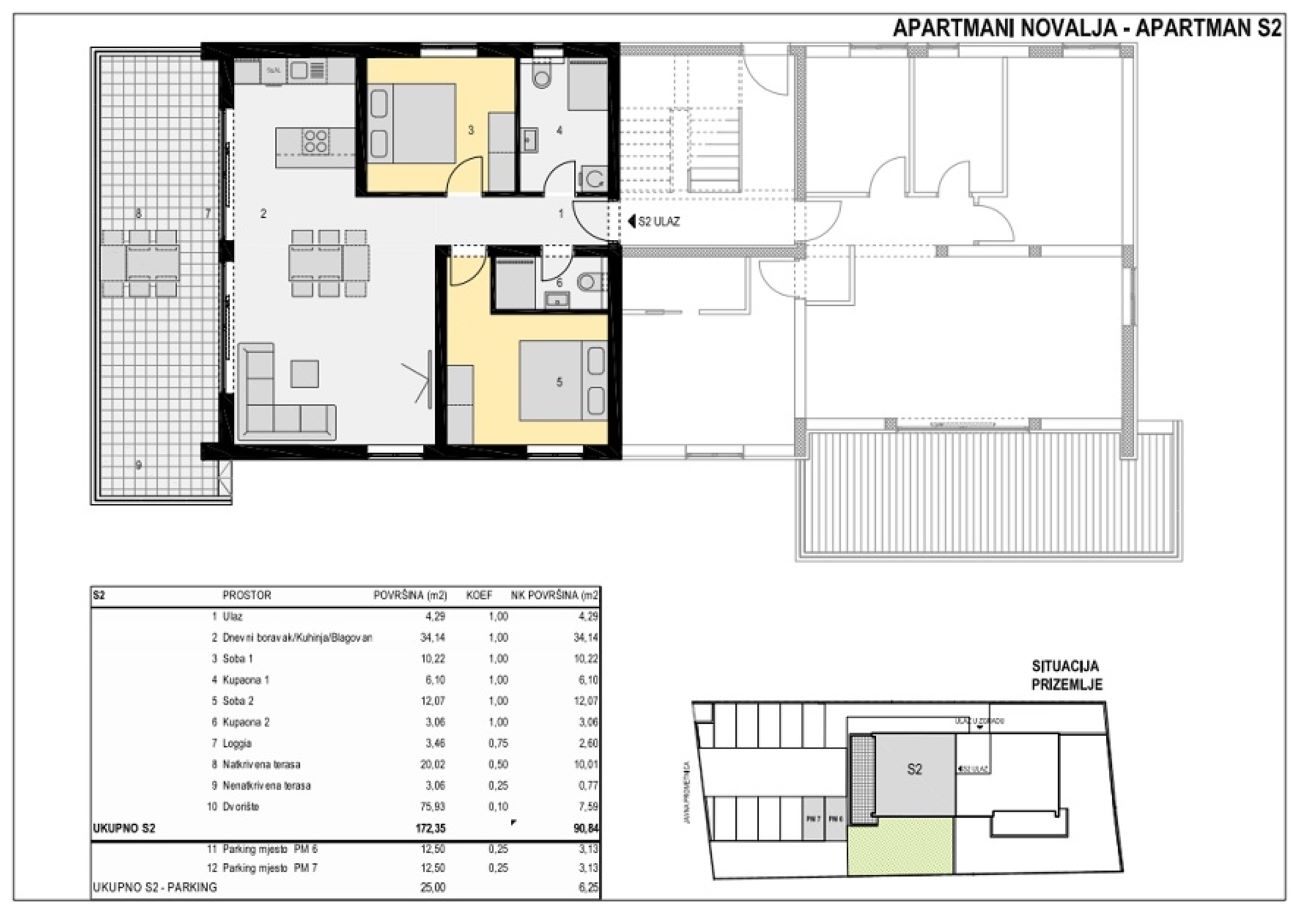 Novalja, a two-room apartment of 99.43 m2 is for sale on the ground floor of a residential building with a total of five apartments built in 2022.