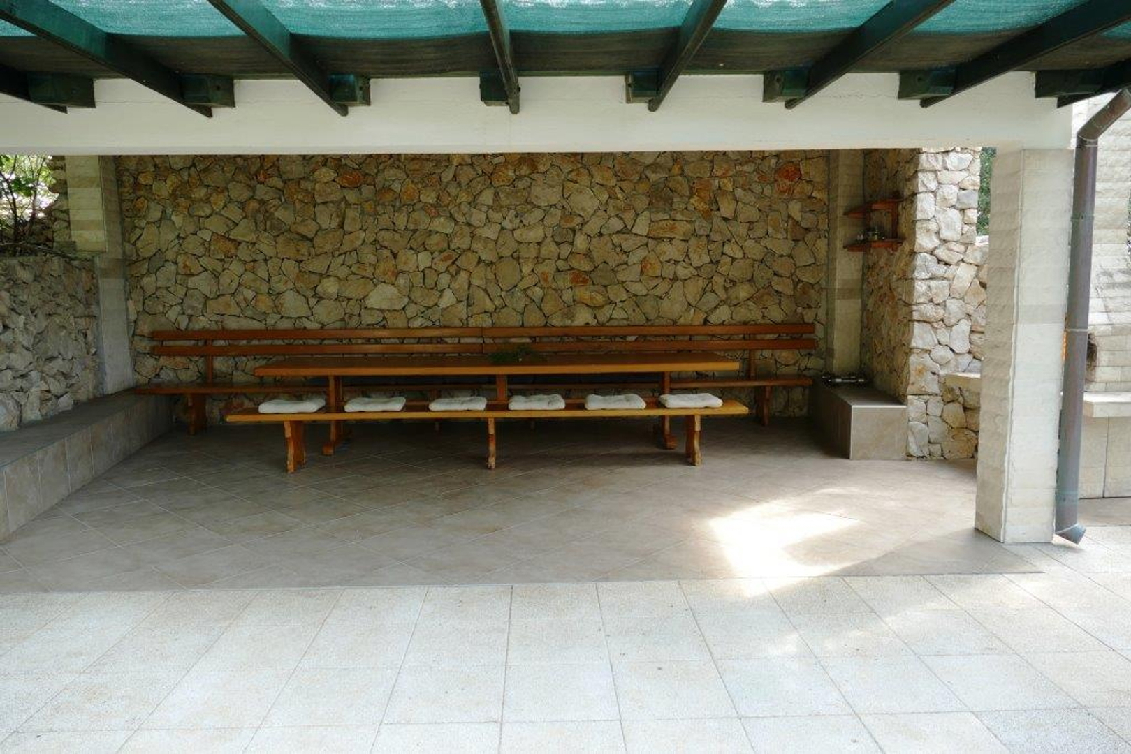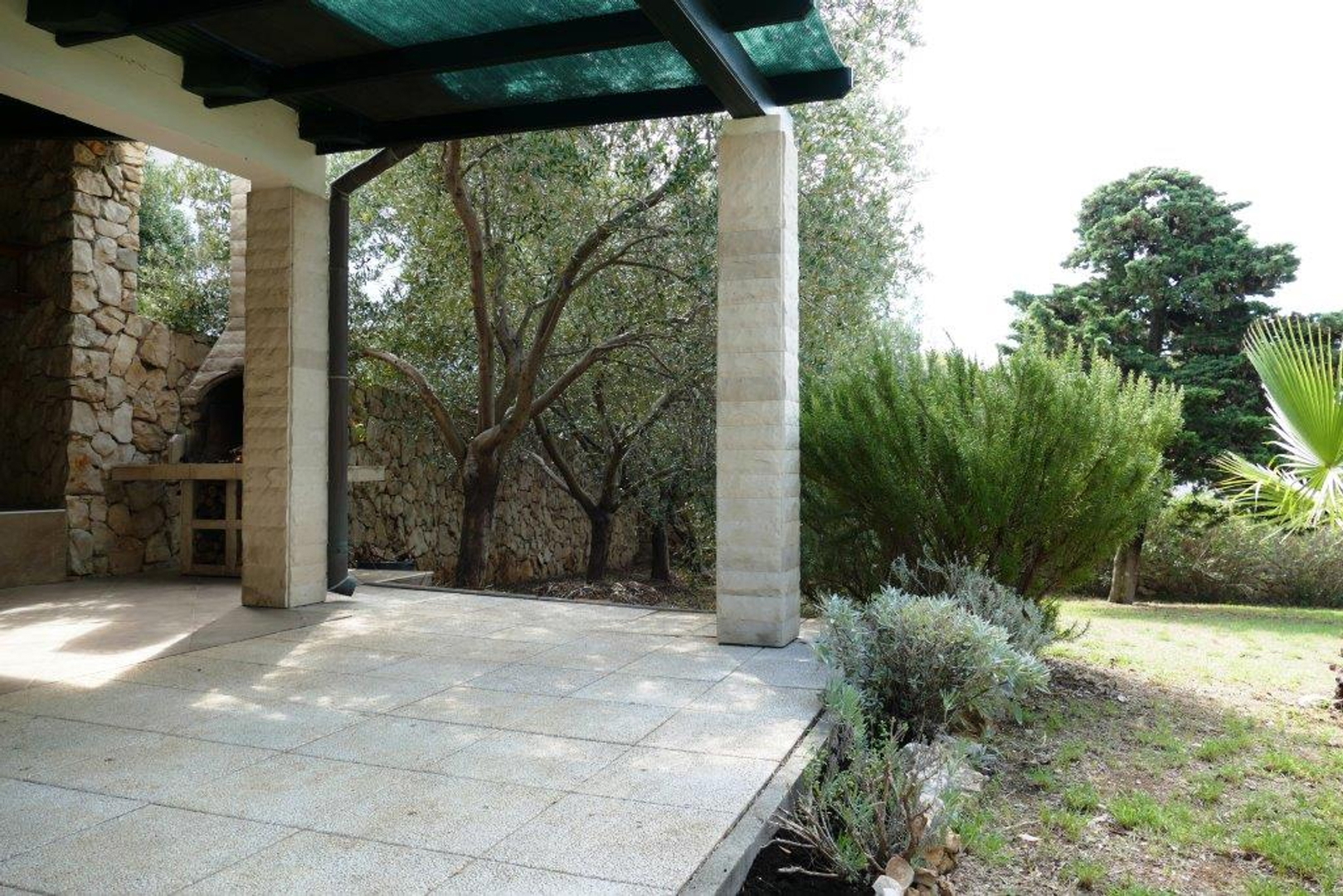 The grounds have a 48 m2 canopy and a fireplace, planted with Mediterranean vegetation, five olive trees, oleander, spices, cypress and oak, and are surrounded by a stone wall.
