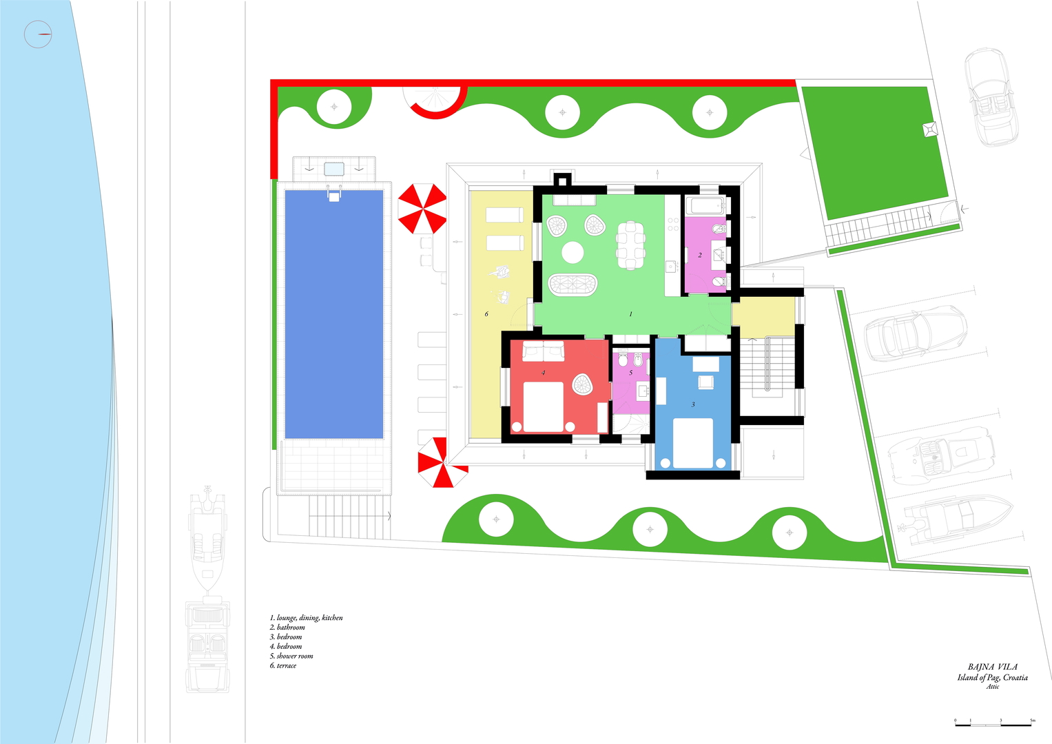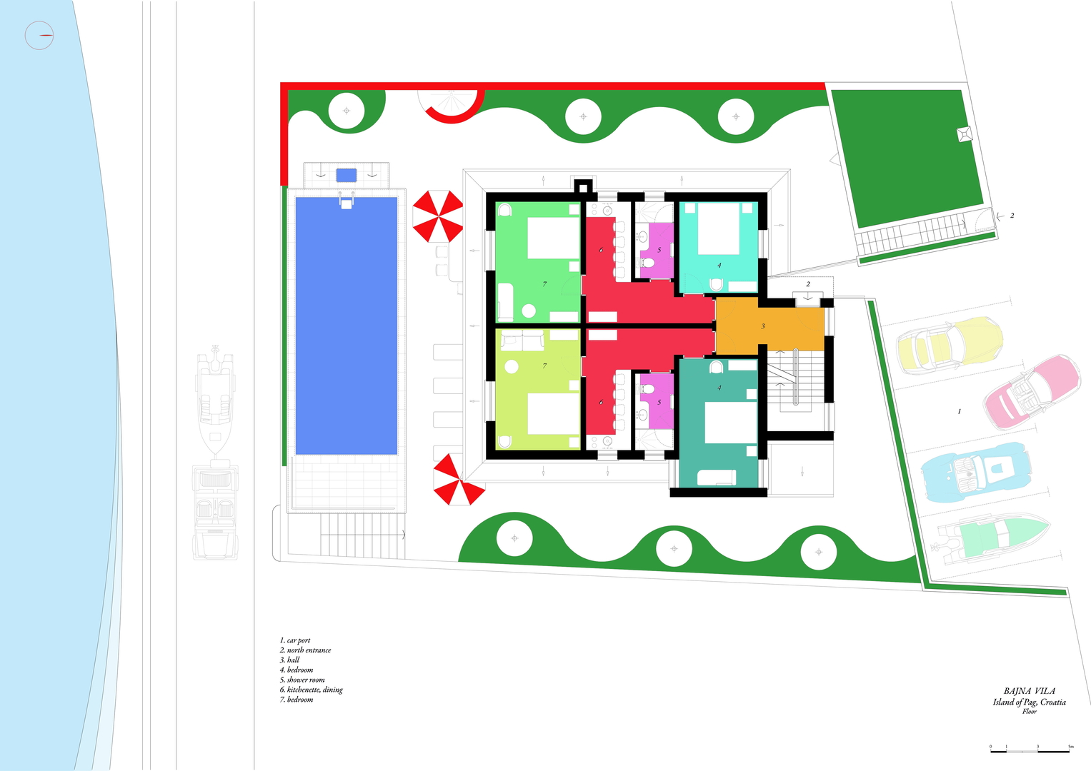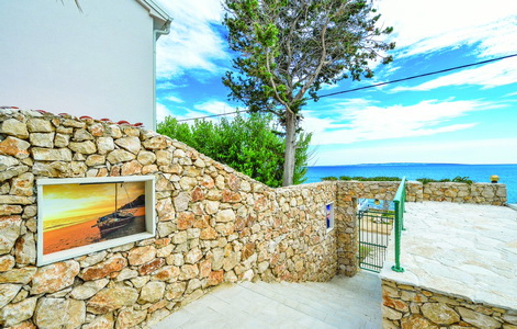 It is located in an excellent location 5 m from the sea and beach (first row), close to shops and restaurants, the town of Pag is 5 km away, Novalja and Zrće 15 km, Zadar (airport) 40 km. Košljun is a small, pleasant town located on the southern side of the island of Pag, ideal for a peaceful vacation, characterized by a beautiful coastline, pebble and sandy beaches, and beautiful, clear sea.