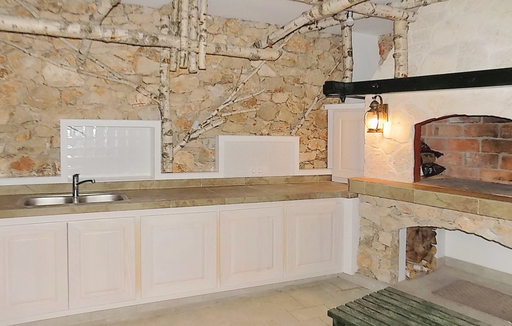 It has four parking spaces, an outdoor swimming pool 10 x 5 m, a special entertainment room of 70 m2 (billiards, darts, table football and a sauna area), an outdoor shower, a toilet, a summer outdoor kitchen with a bar and a barbecue, a boiler room, solar heating, underfloor heating and a fireplace on the ground floor, air conditioning in each unit and a very nicely decorated garden.