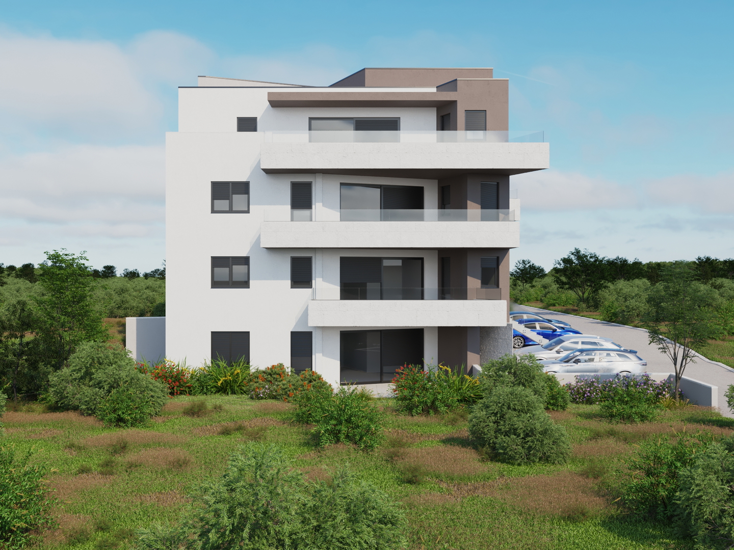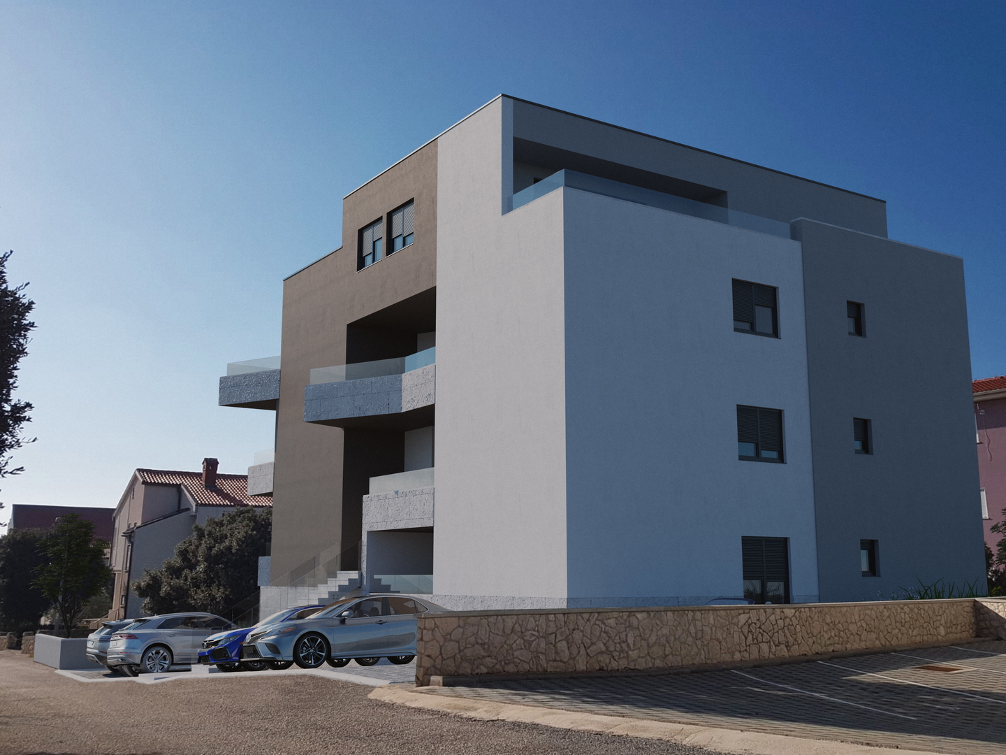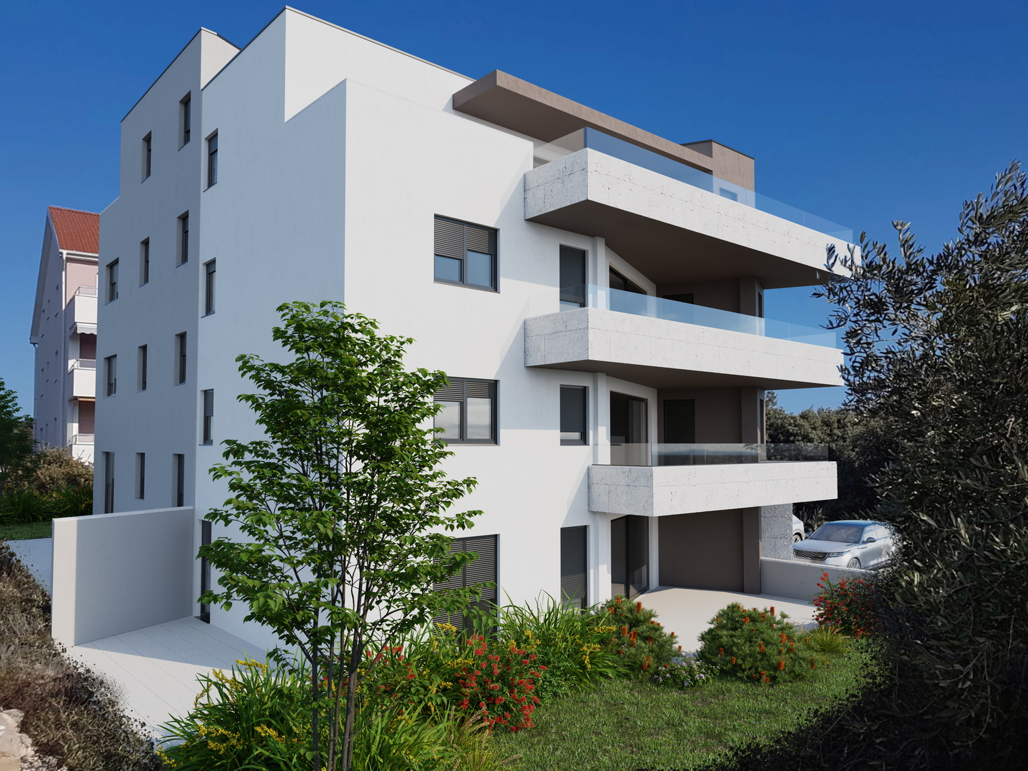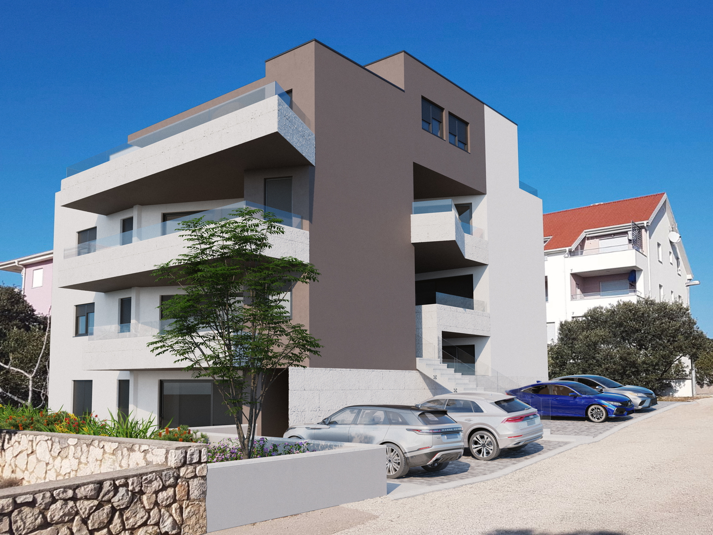 Pag – Mandre, two-bedroom apartment for sale with 104.50 m2 of floor area on the ground floor of a residential building built in 2023.