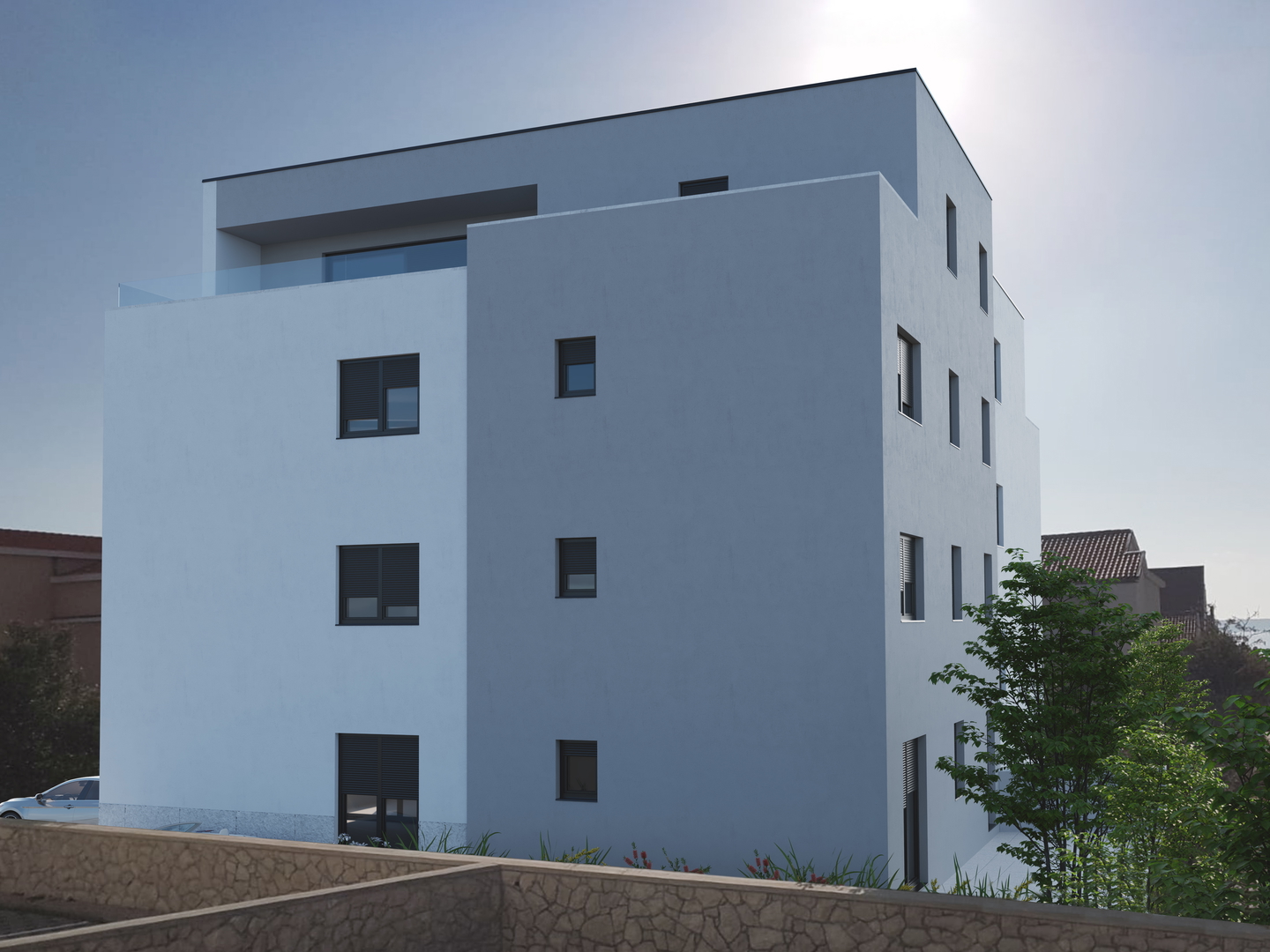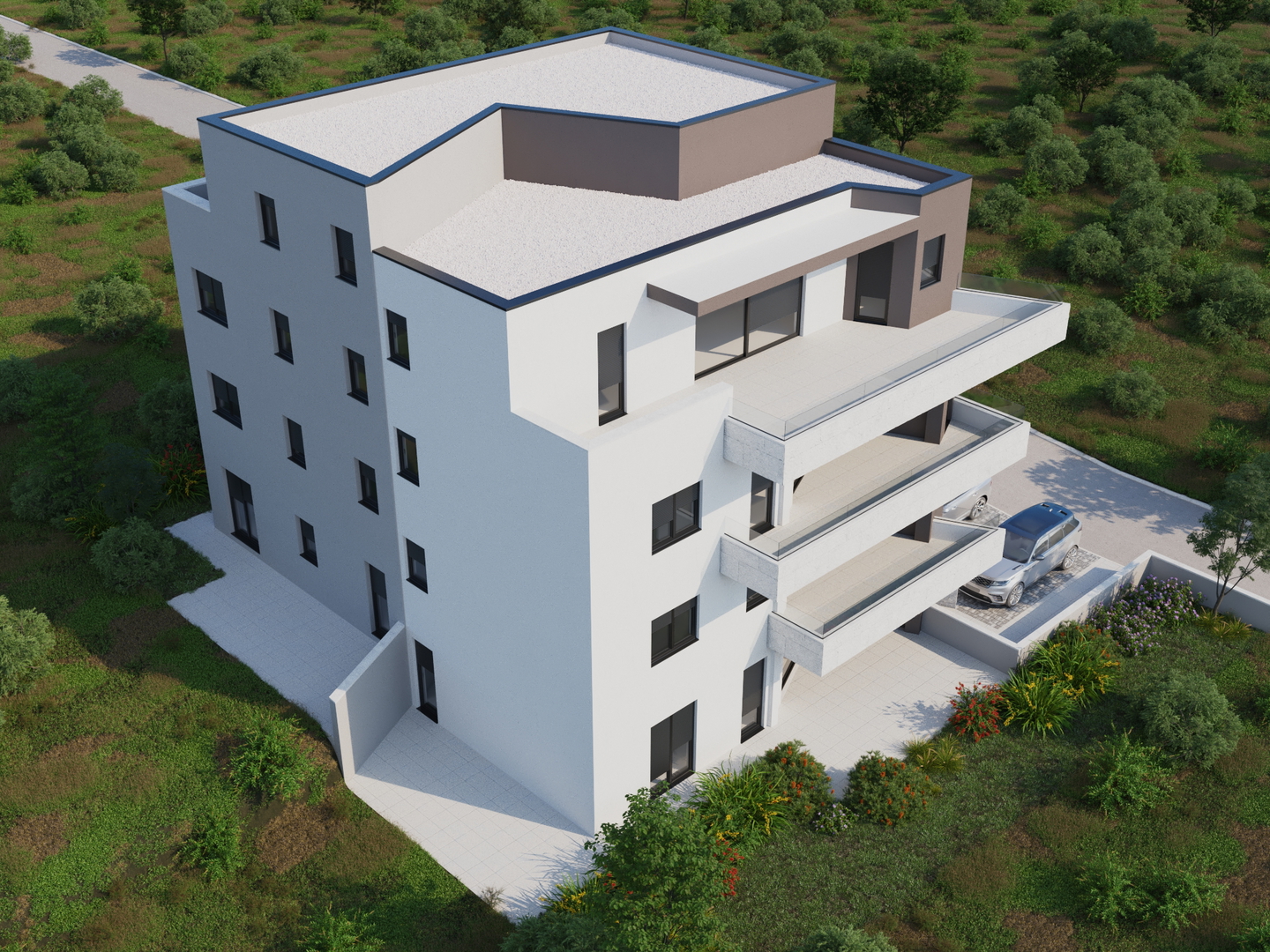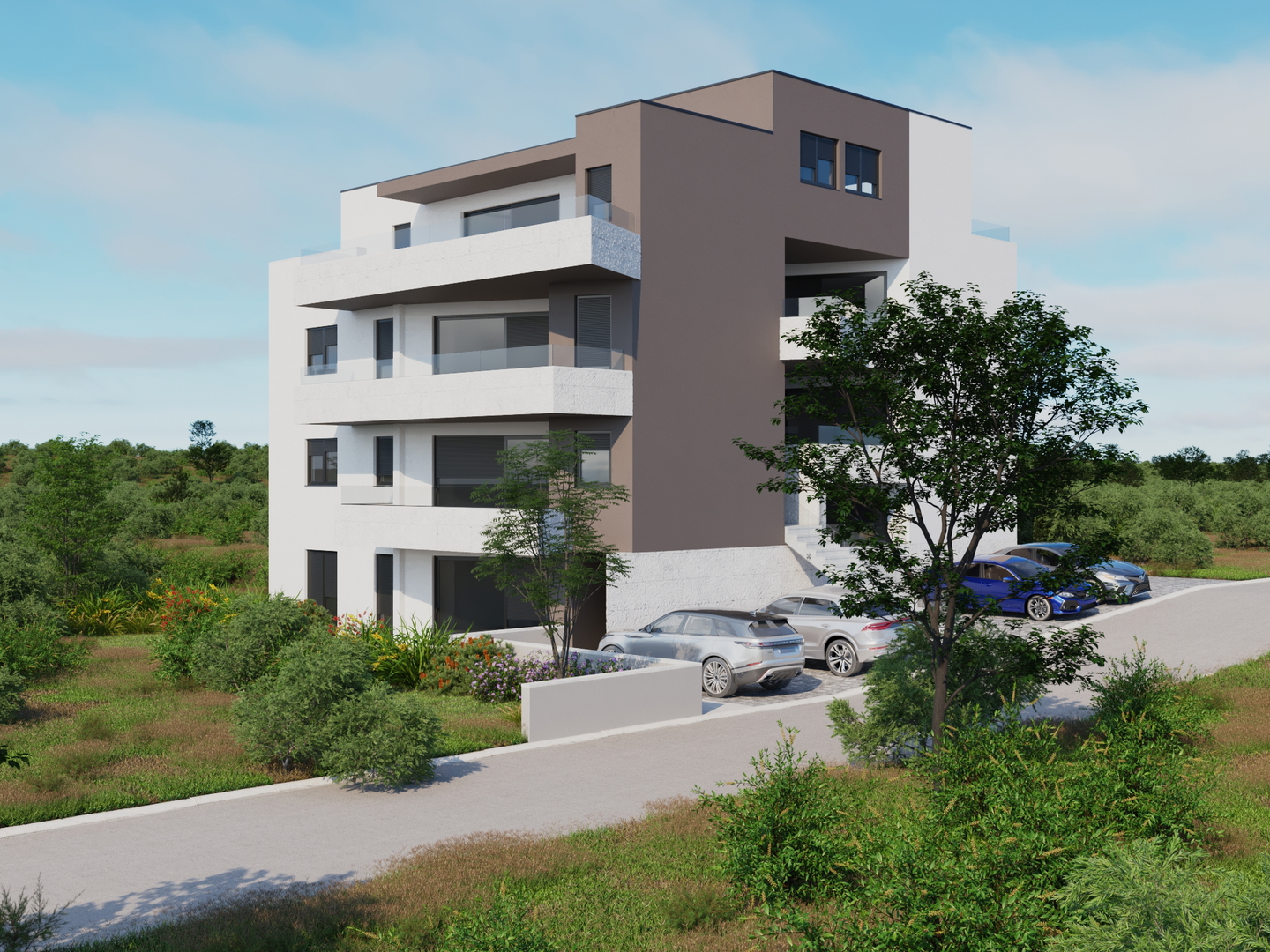 Pag – Mandre, two-bedroom apartment for sale with 104.50 m2 of floor area on the ground floor of a residential building built in 2023.