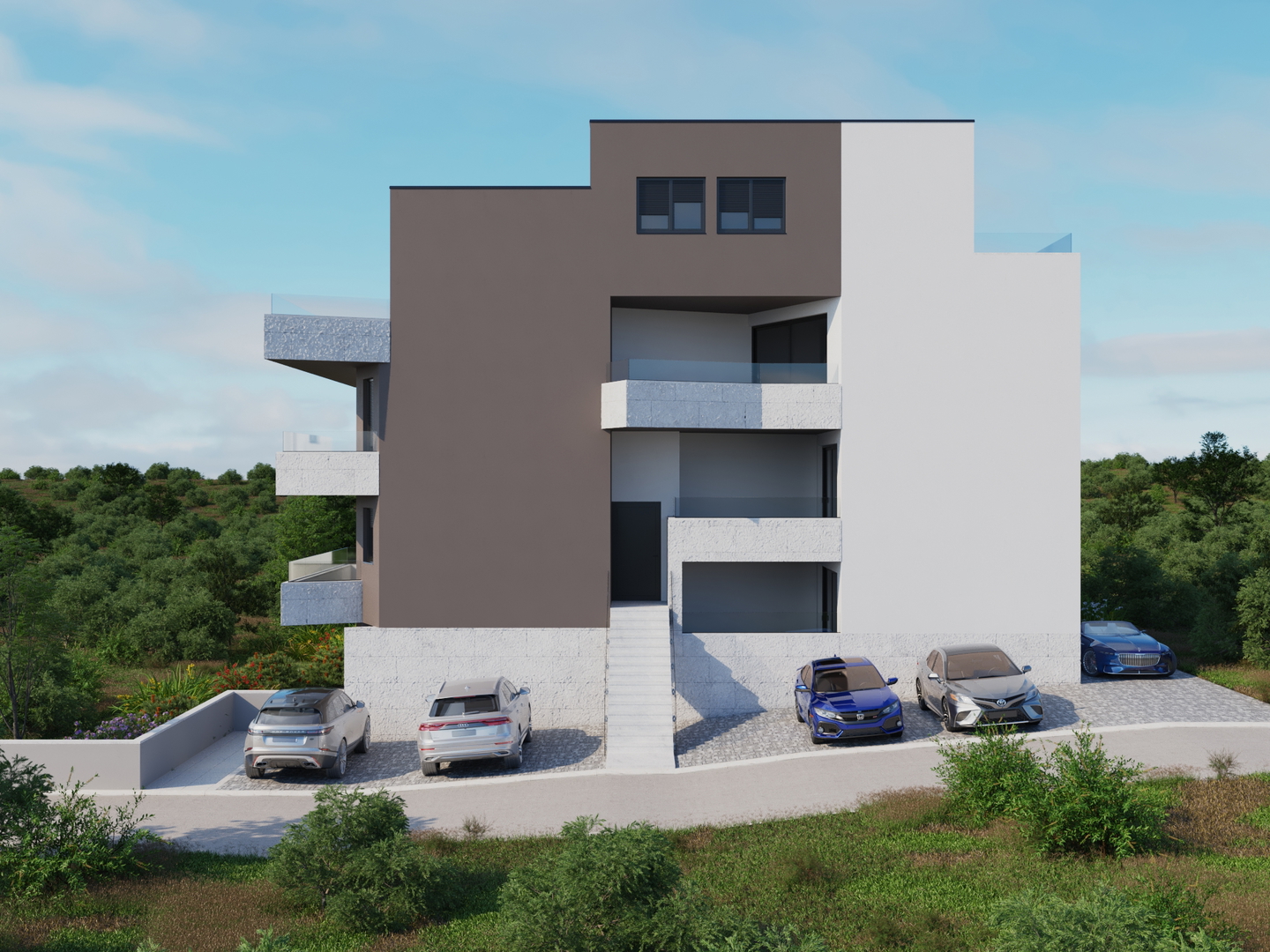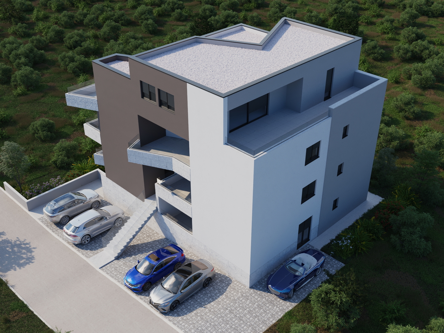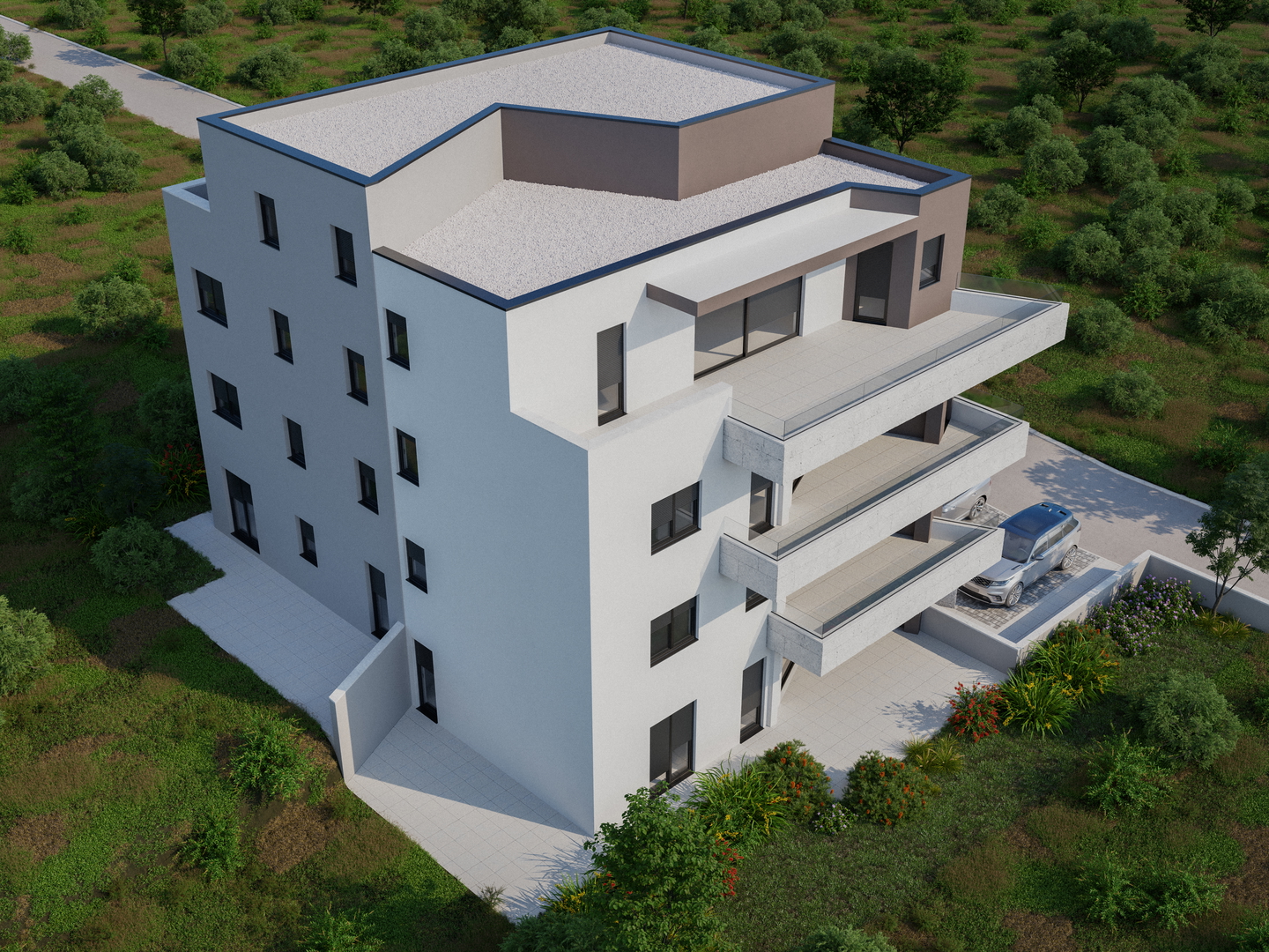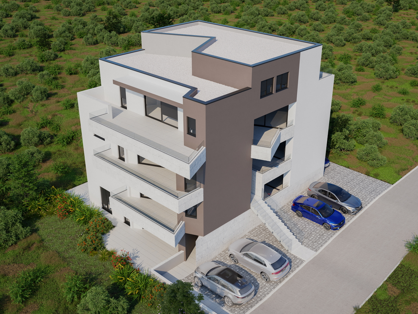 Pag – Mandre, two-bedroom apartment for sale with 104.50 m2 of floor area on the ground floor of a residential building built in 2023.