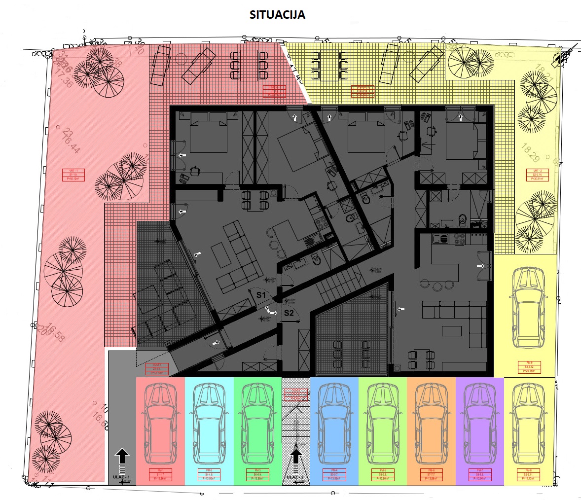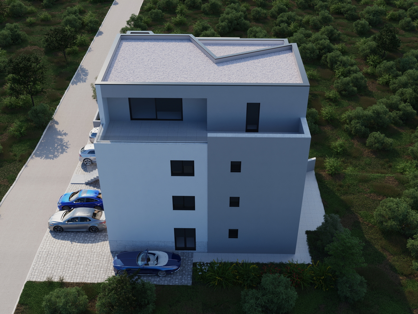 High-quality construction, reinforced concrete construction, walls – Porotherm 25 Profi, partition walls – Porotherm 10 Profi, flat roof 15 cm XPS, external walls 8 cm EPS, finish acrylic plaster, ceramics, glass fence on the terrace on ALU supports, interior single-wing carpentry natural oak wooden door, anti-burglary and fireproof entrance door, external PVC multi-chamber carpentry, 3 panes, outside color anthracite, inside white, roller mosquito nets, electrically movable blinds on lifting sliding walls, internal stone benches, external anthracite benches with seal, staircase paved with natural stone, stainless steel fence, rooms floor covering three-layer oak parquet, air conditioning unit in all rooms and living room, bathroom floor and wall covering ceramic tiles 60 cm x 120 cm, Hansgrohe under-plaster shower system + fittings, premium sink, GEBERIT built-in cistern + rimless toilet shell with soft close board, ladder radiator, grassy environment with planted citrus trees, stone-paved parking lot, preparation of installation for chargers for electric vehicles, video intercom, preparation for TV in the rooms…