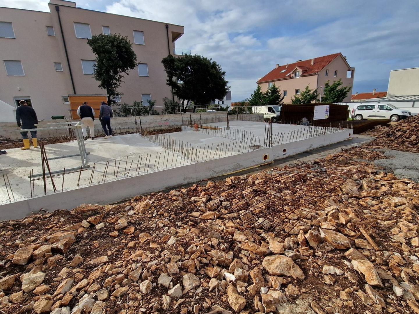 Pag – Mandre, for sale is a two-story two-bedroom apartment of 75 m2 in a residential building with a total of three apartments under construction, planned move-in at the end of 2026. Quality construction, electric underfloor heating, intercom, electric blinds, preparation for electric car charging, air conditioning in every room, quality sanitary ware, exterior carpentry with triple glazing, ceramics throughout the apartment, etc…