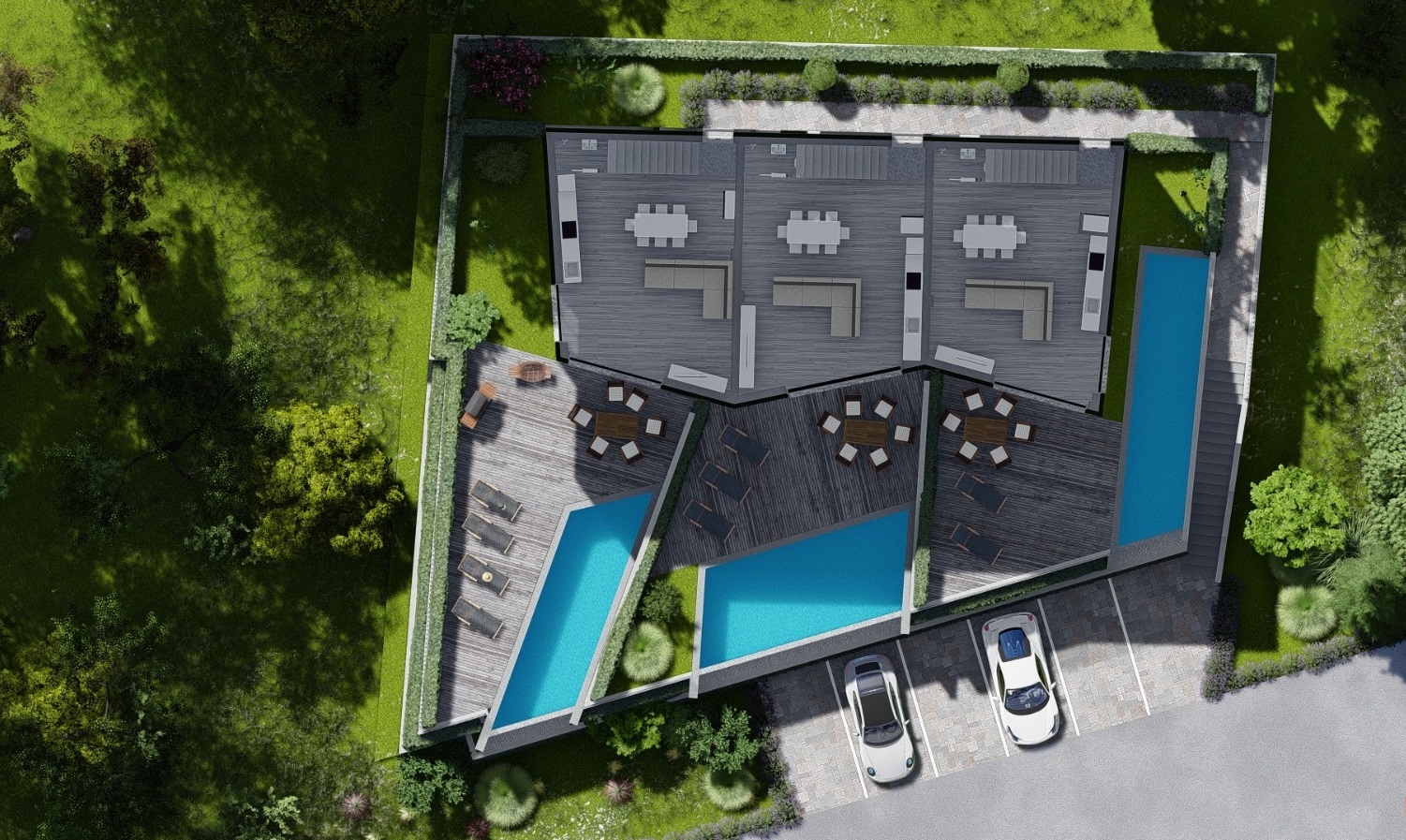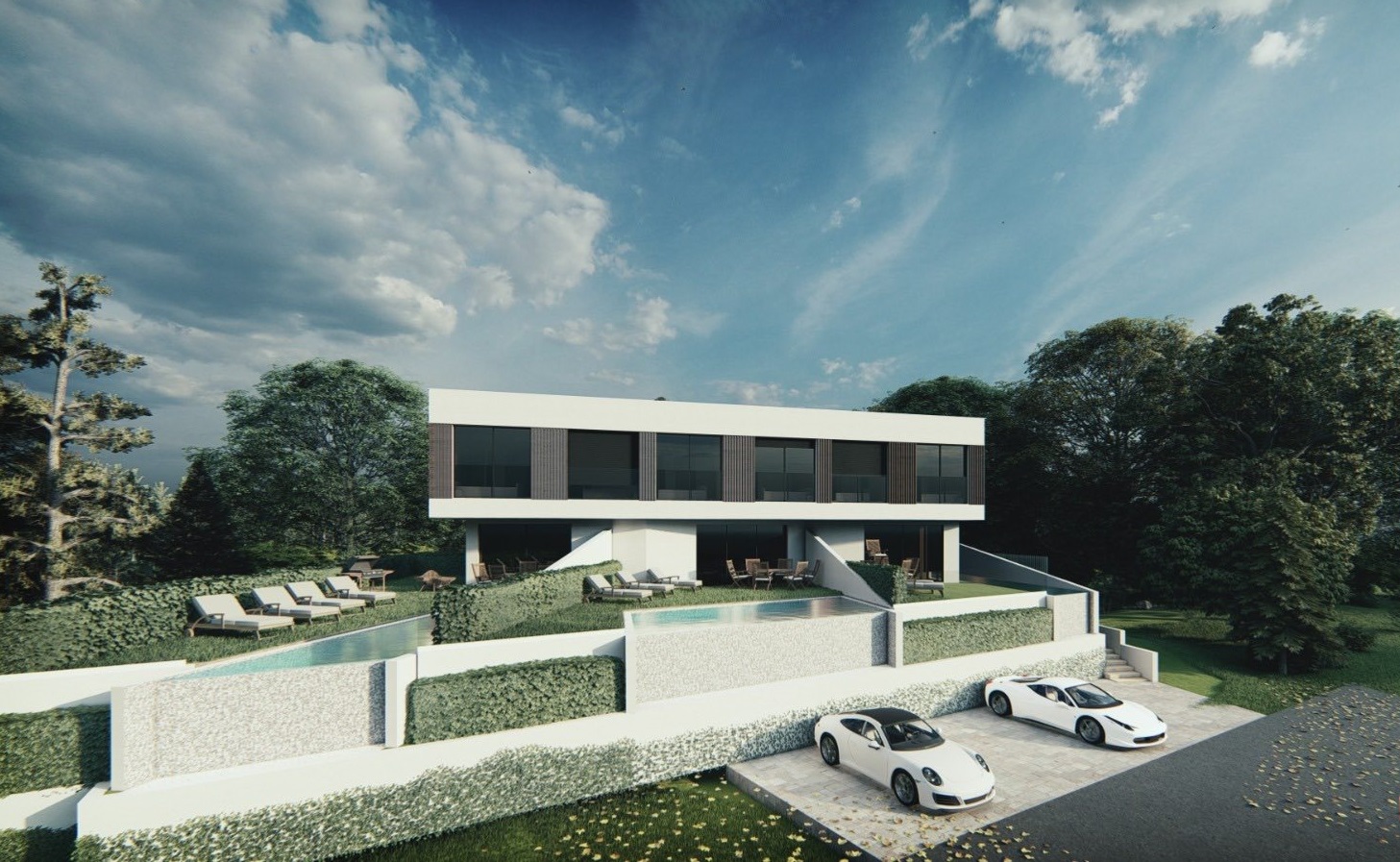 It has two parking spaces, a swimming pool of approx. 26.5 m2 and a garden of approx. 123 m2.