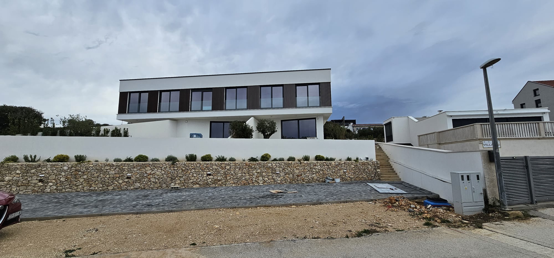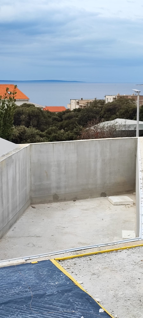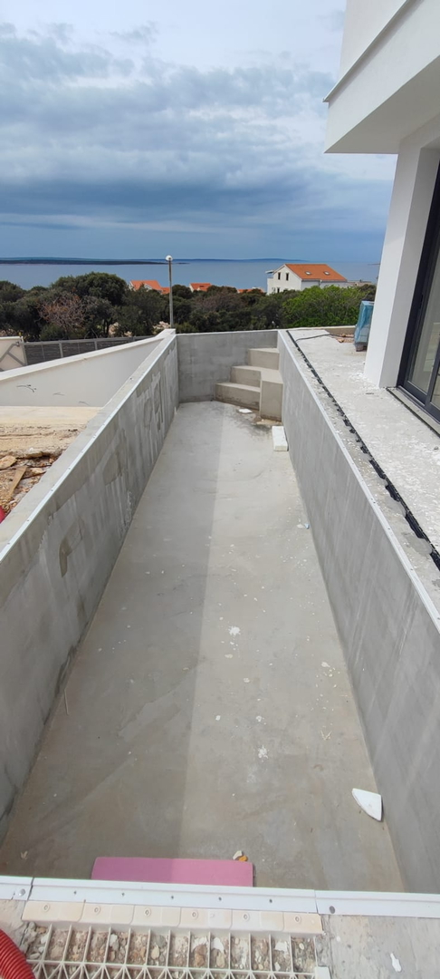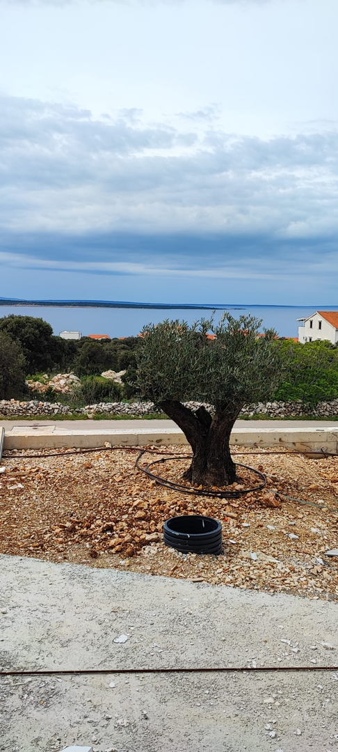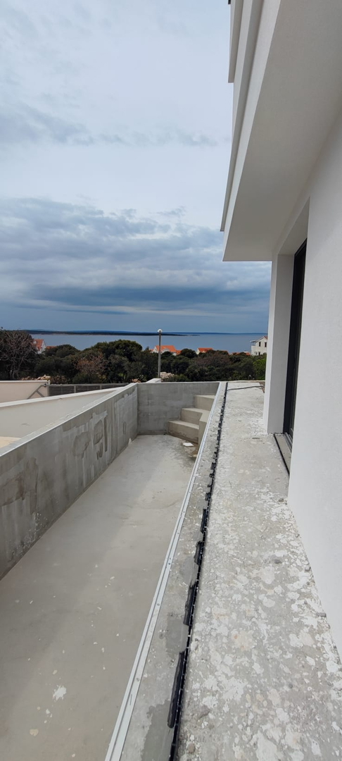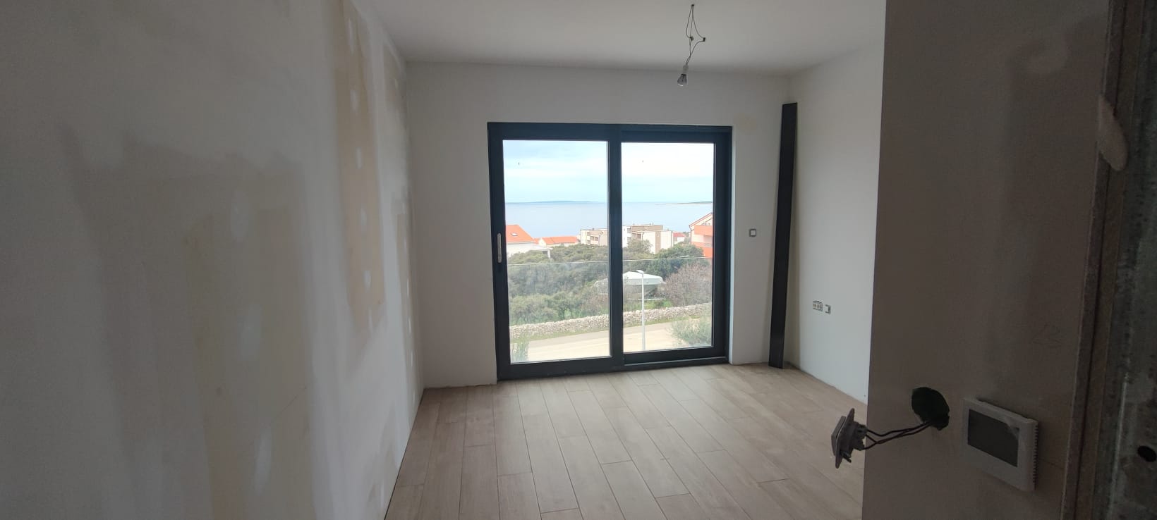 Pag – Mandre, two-storey three-bedroom apartment for sale on the ground floor of a residential building with a total of three apartments, built in 2022, high-quality construction.