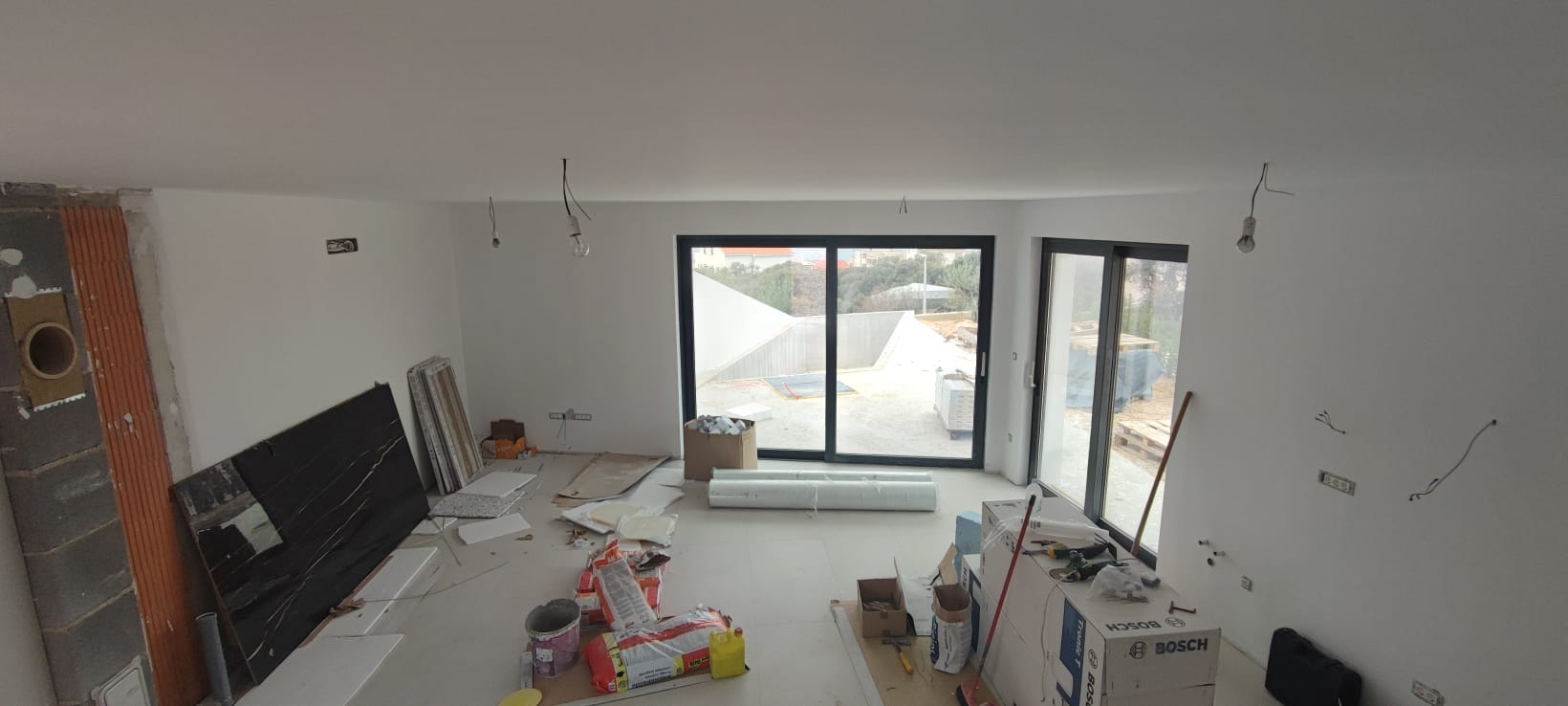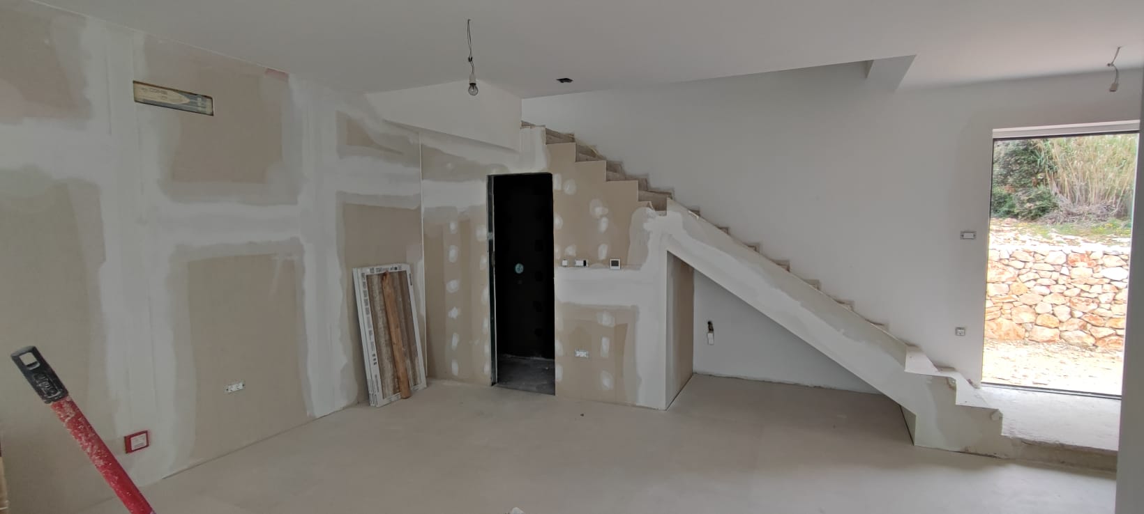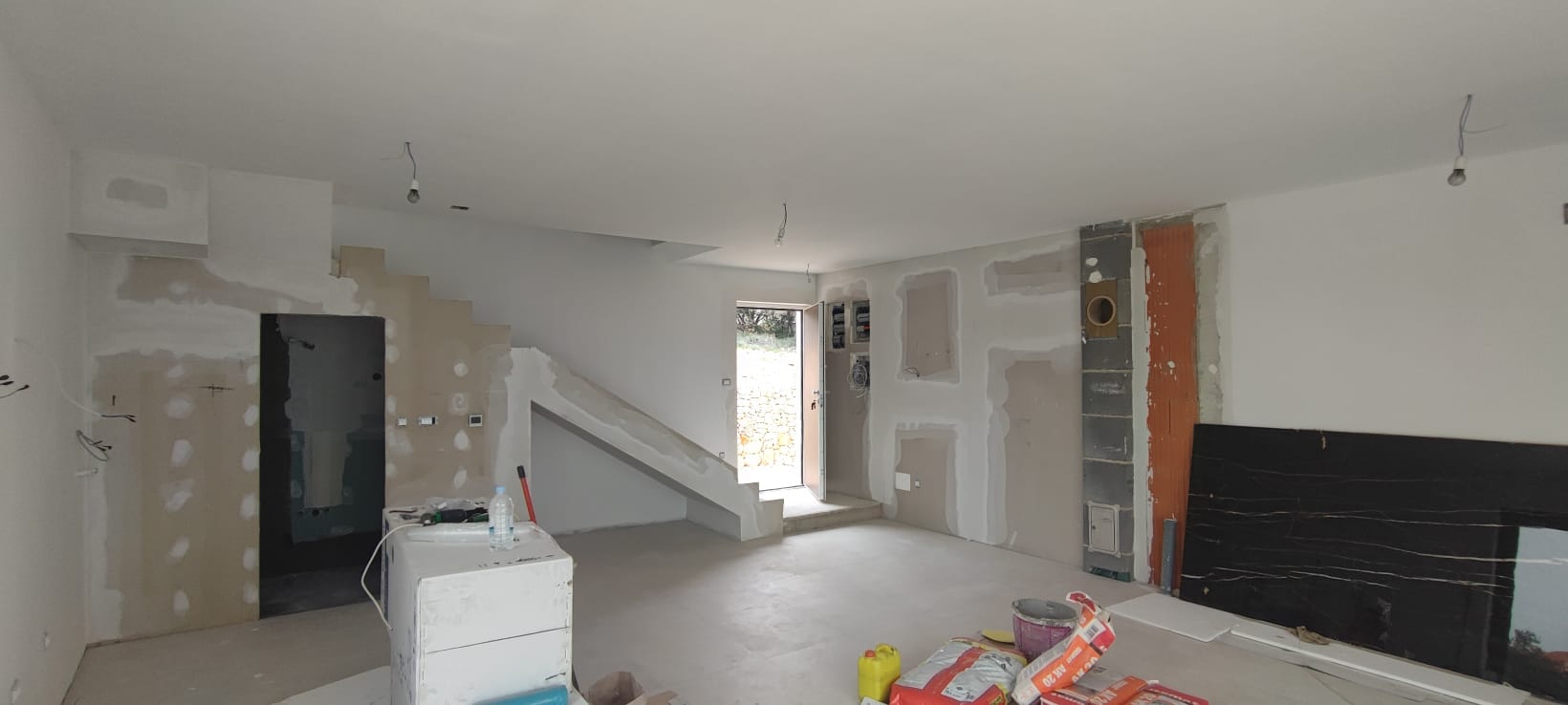 Ground floor: living room + kitchen + dining room, bathroom and terrace.