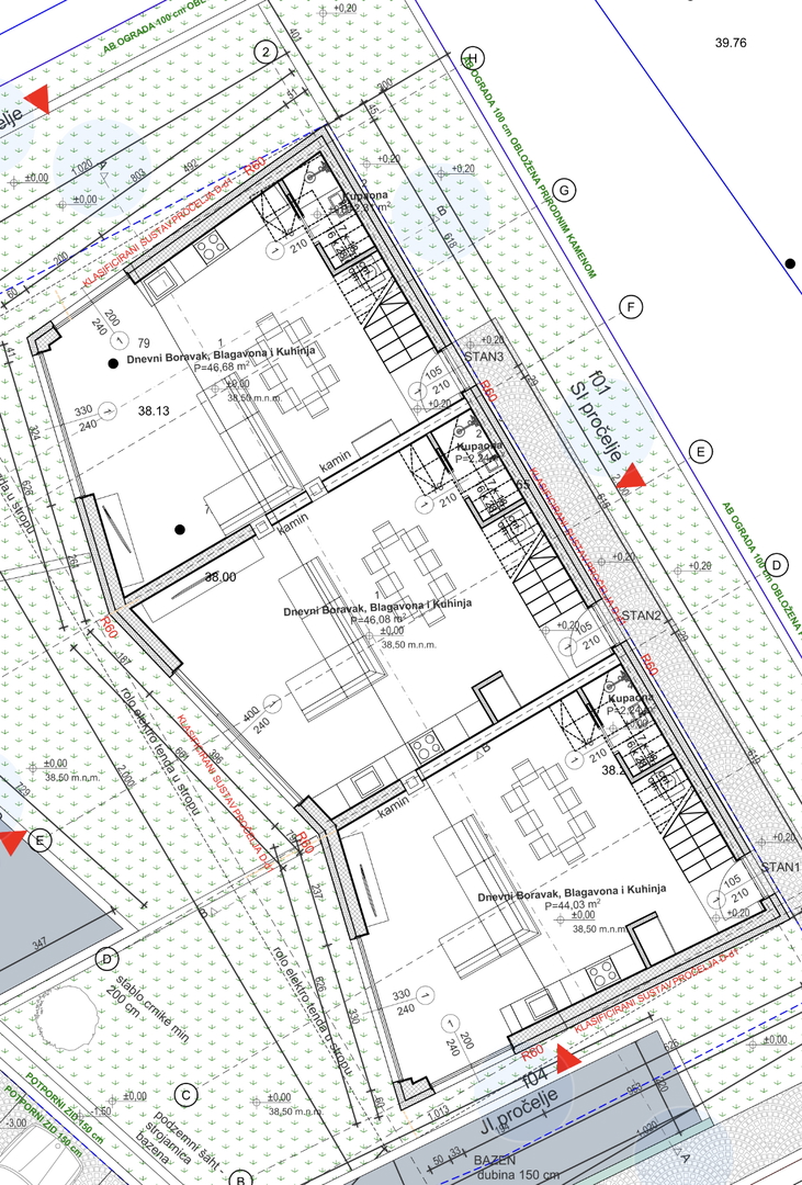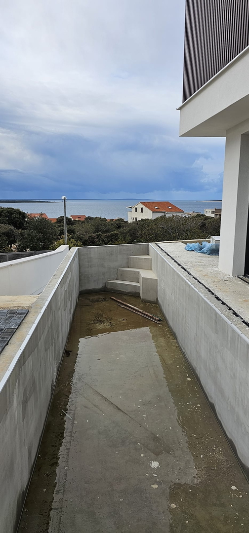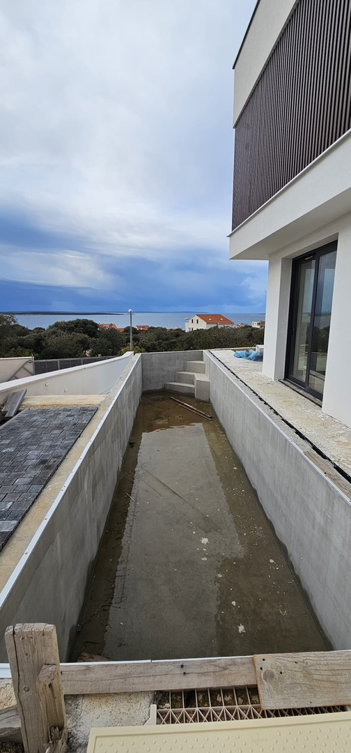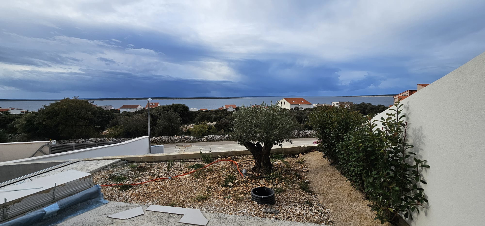 Pag – Mandre, two-storey three-bedroom apartment for sale on the ground floor of a residential building with a total of three apartments, built in 2022, high-quality construction.