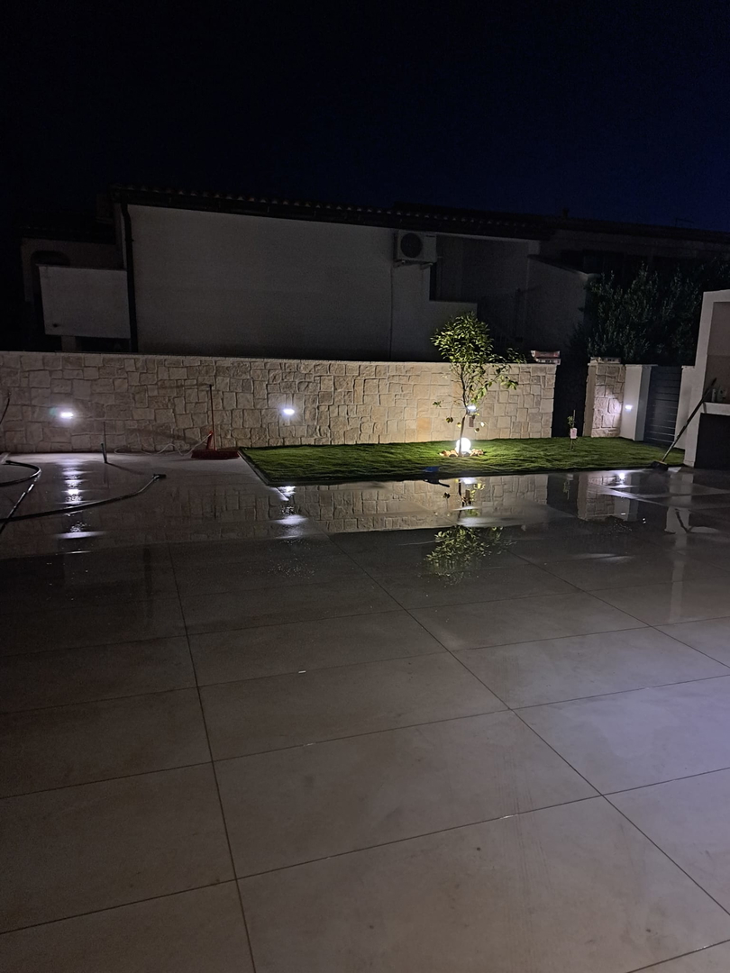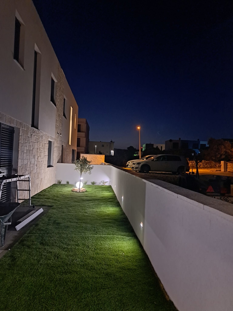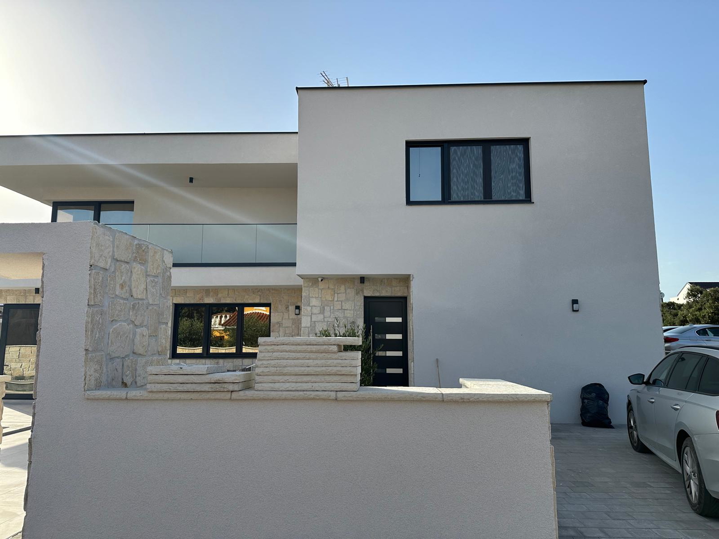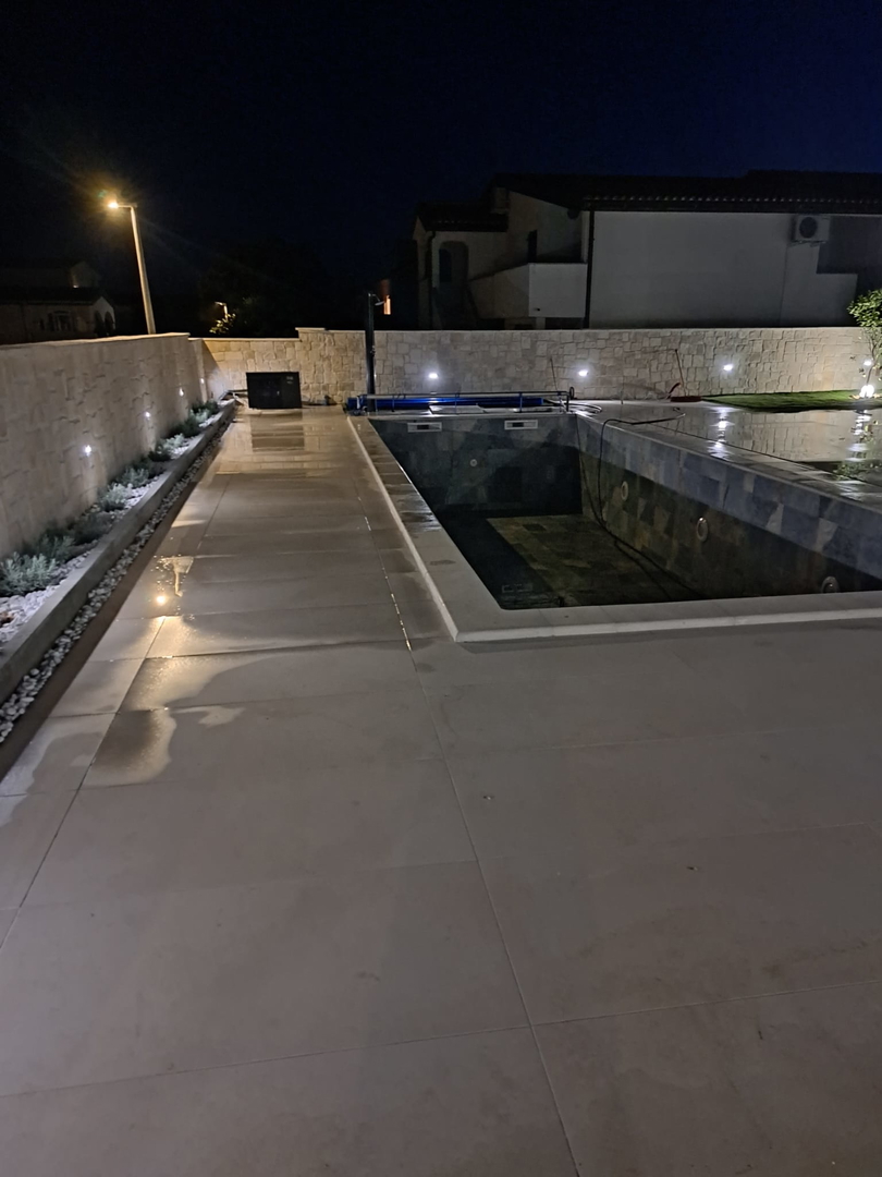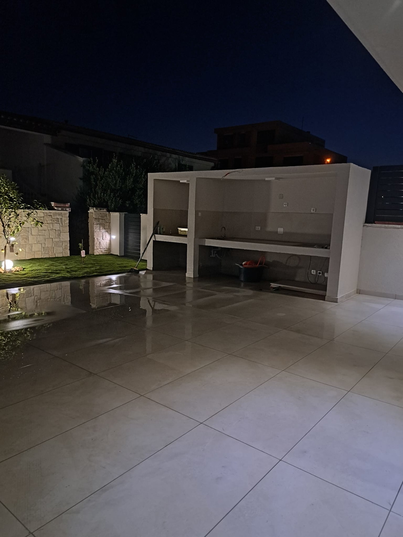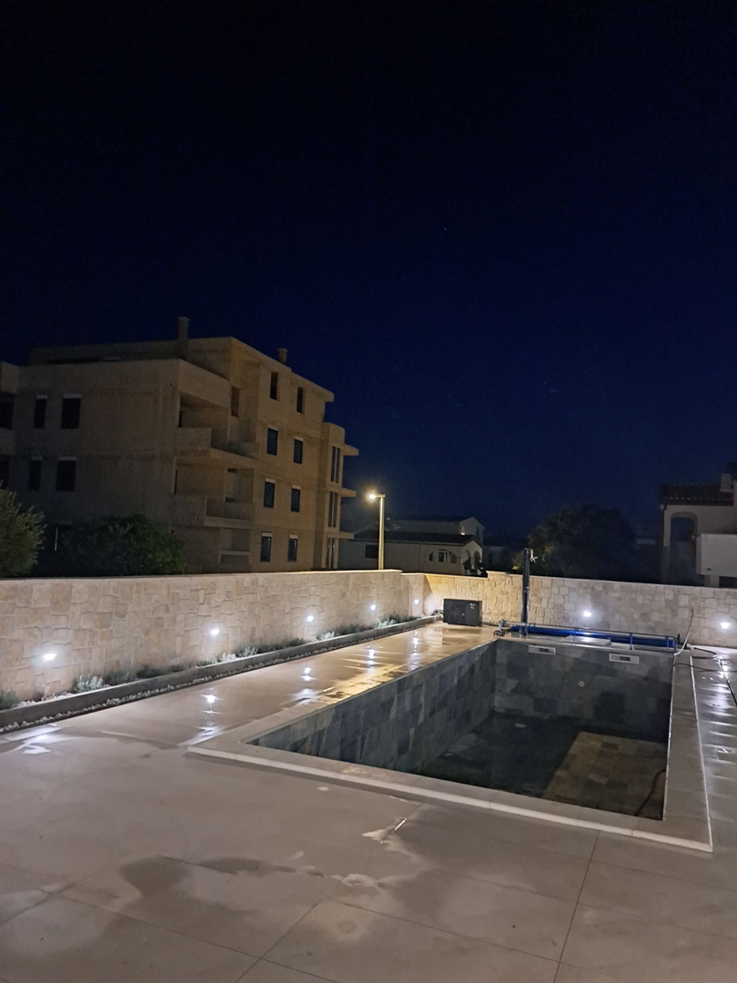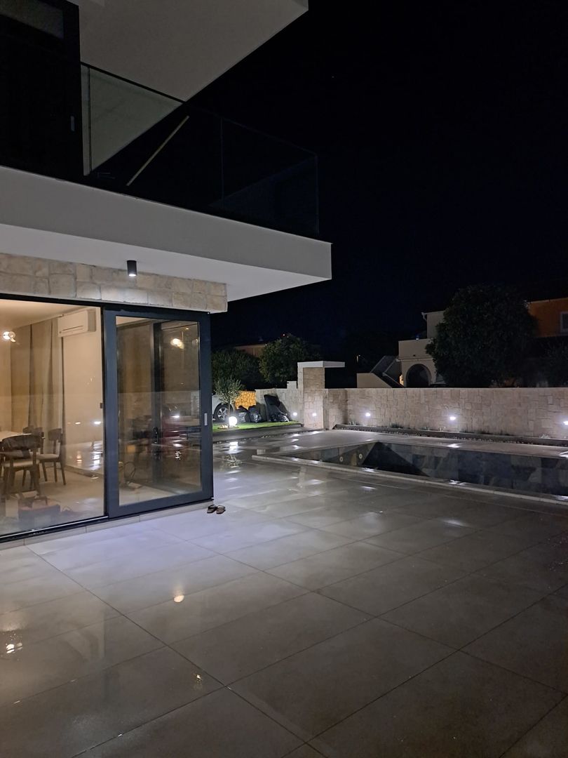 High-quality brick construction and AB construction, 15 cm insulation, flat roof with hydro and thermal insulation, high-quality sanitary facilities, fittings directly from the wall, Marazzi ceramic tiles, spider glass fence on the terrace, Daikin heat pump for heating/cooling and hot water A*** with underfloor heating and converters, three-layer anthracite carpentry with bronze effect and mosquito nets, edges of the house facing the sea without pillars, Smart house – control using mobile phones, tablets or computers, natural stone used as aesthetic details, swimming pool with heat pump and all automation, lined with ceramic tiles, summer kitchen with grill, sink, induction hobs and worktops, pergola with approx. 20m2, solar shower outside, jacuzzi, outdoor ambient lighting, preparation for solar panels, three-phase power connection, fence around the house AB with natural stone facing the street, car chargers, video surveillance, coded entrance, etc…