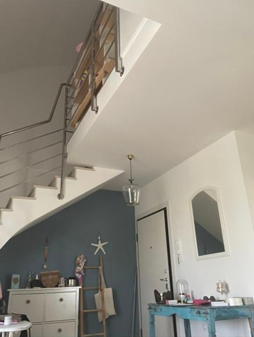 upper floor: two bedrooms, hallway, bathroom and terrace