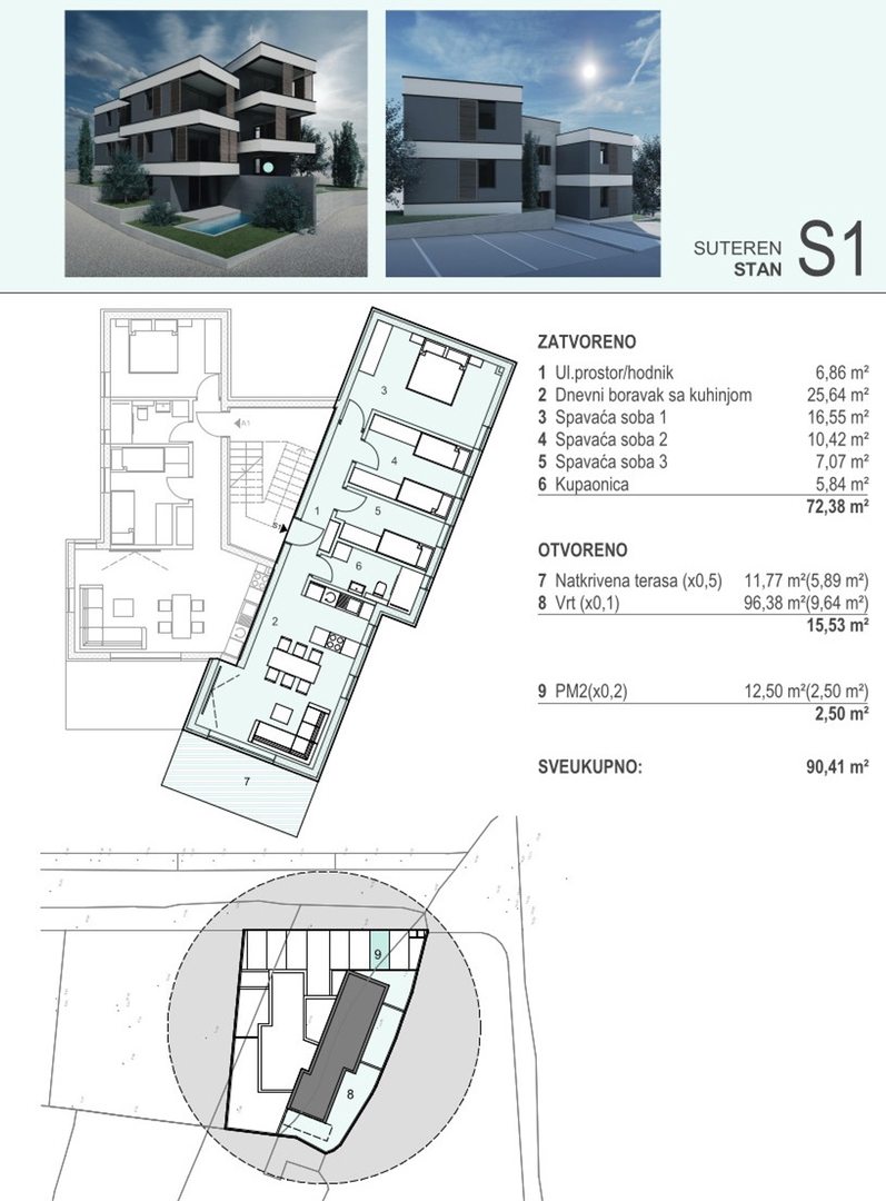 Pag – Šimuni, three-bedroom apartment of 90.41 m2 for sale in the basement of a residential building with a total of six apartments built in 2023.