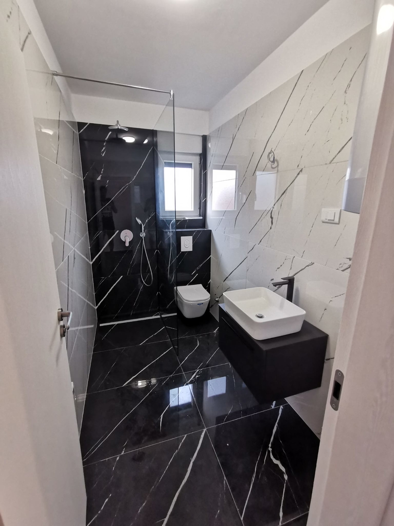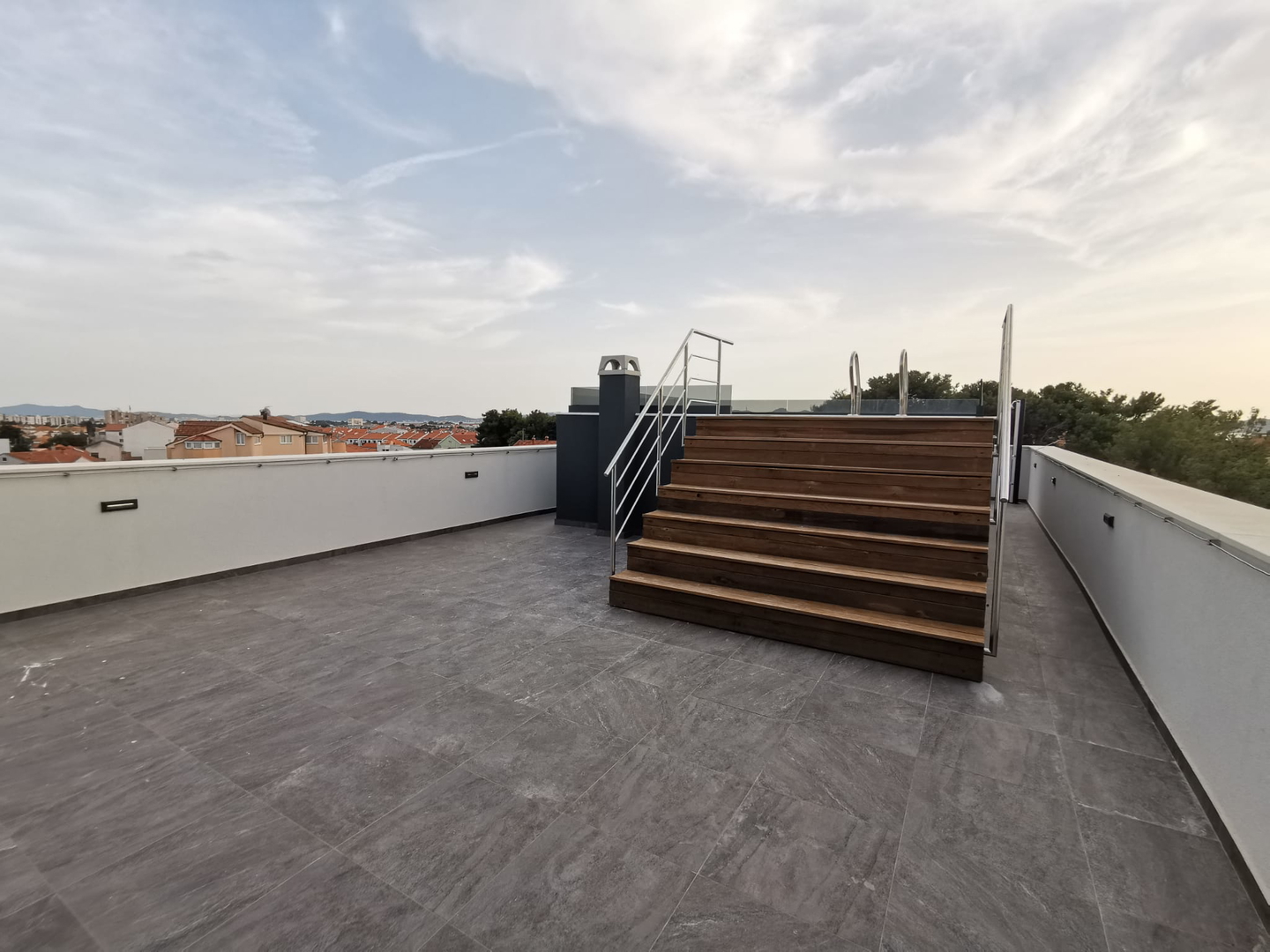Zadar – Belafuža, a three-room apartment of 146.19 m2 is for sale on the second floor of a residential building with a total of seven apartments built in 2021, quality construction, 10 cm Styrofoam facade, brick partition walls, triple-layered glass, triple-layered parquet 1st class, ceramics 1st class , security and fire doors, air conditioning in all rooms, underfloor heating throughout the apartment, heat pumps, etc…