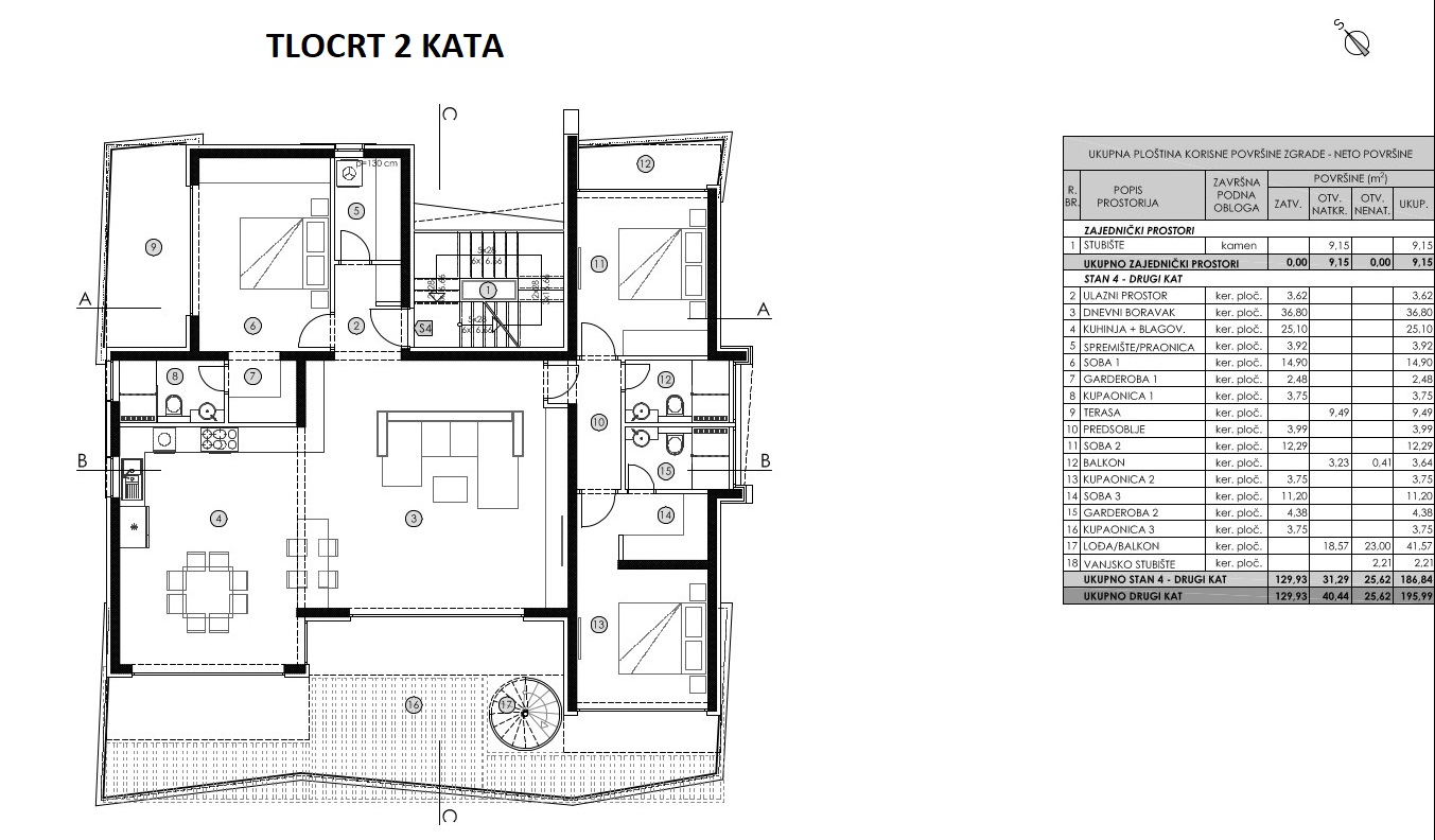Zadar – Kožino, luxury three-room apartment of 255 m2 for sale on the second floor of a residential building built in 2021, high-quality construction.