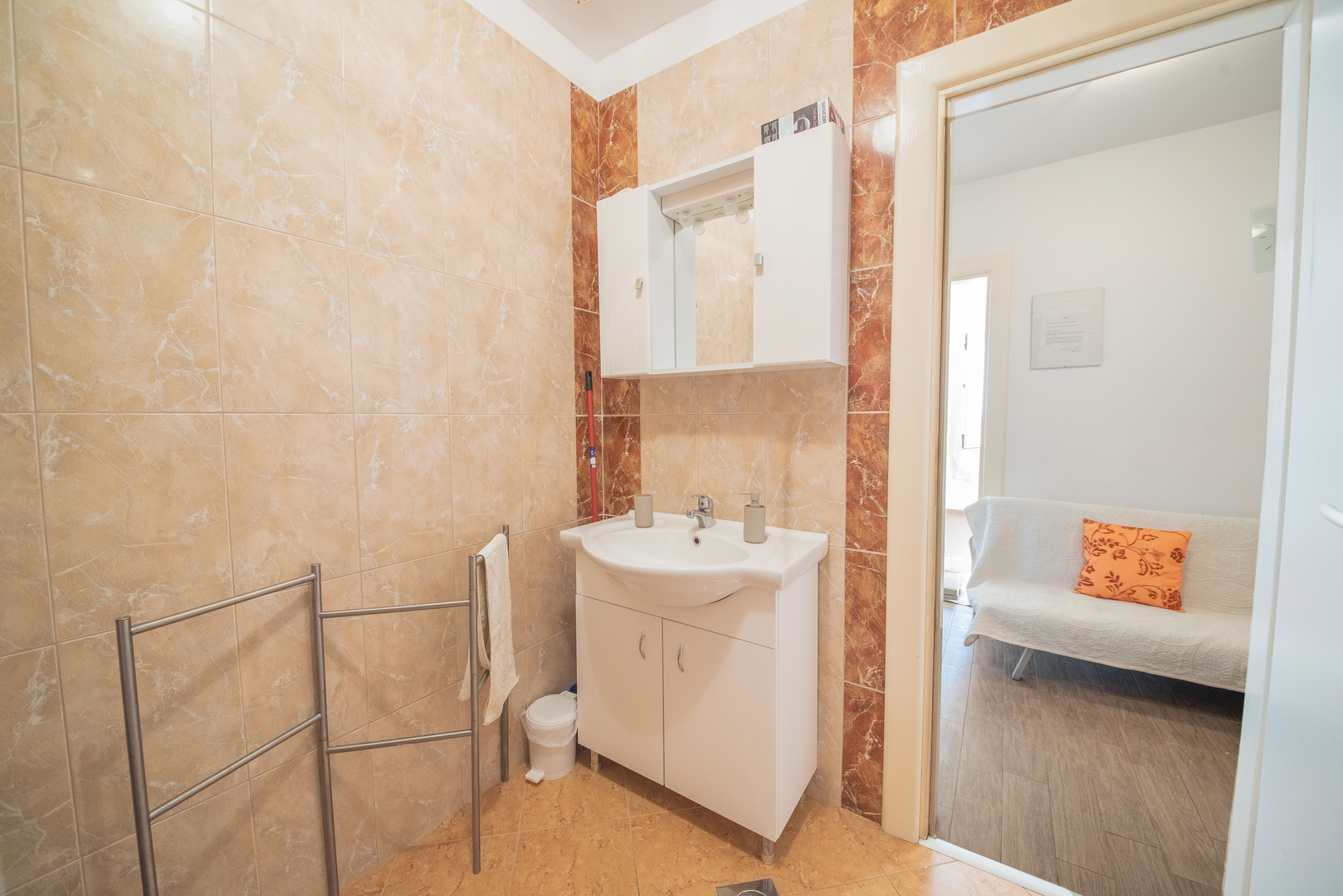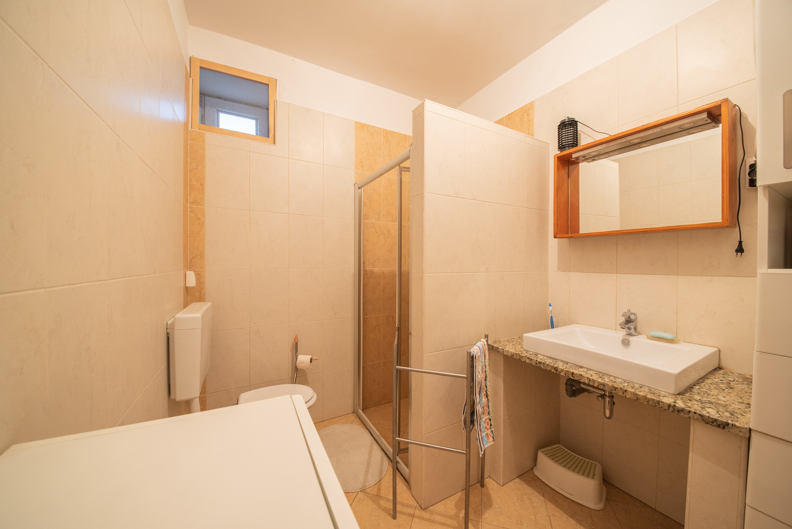 It is located in an excellent location 30 m away from the sea and the beach (1 row), within a radius of 20 – 50 m there is a children’s playground, cafes, restaurants, a pastry shop, a butcher’s shop, a market, a pharmacy, a post office, a clinic and all other facilities necessary for have a nice vacation and life!!