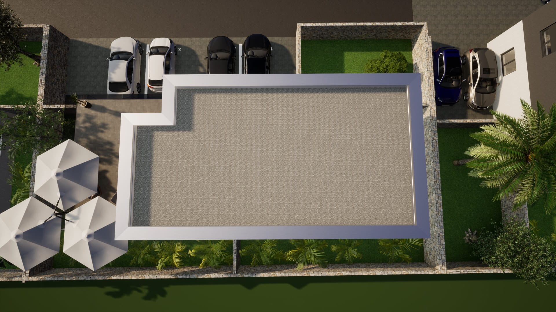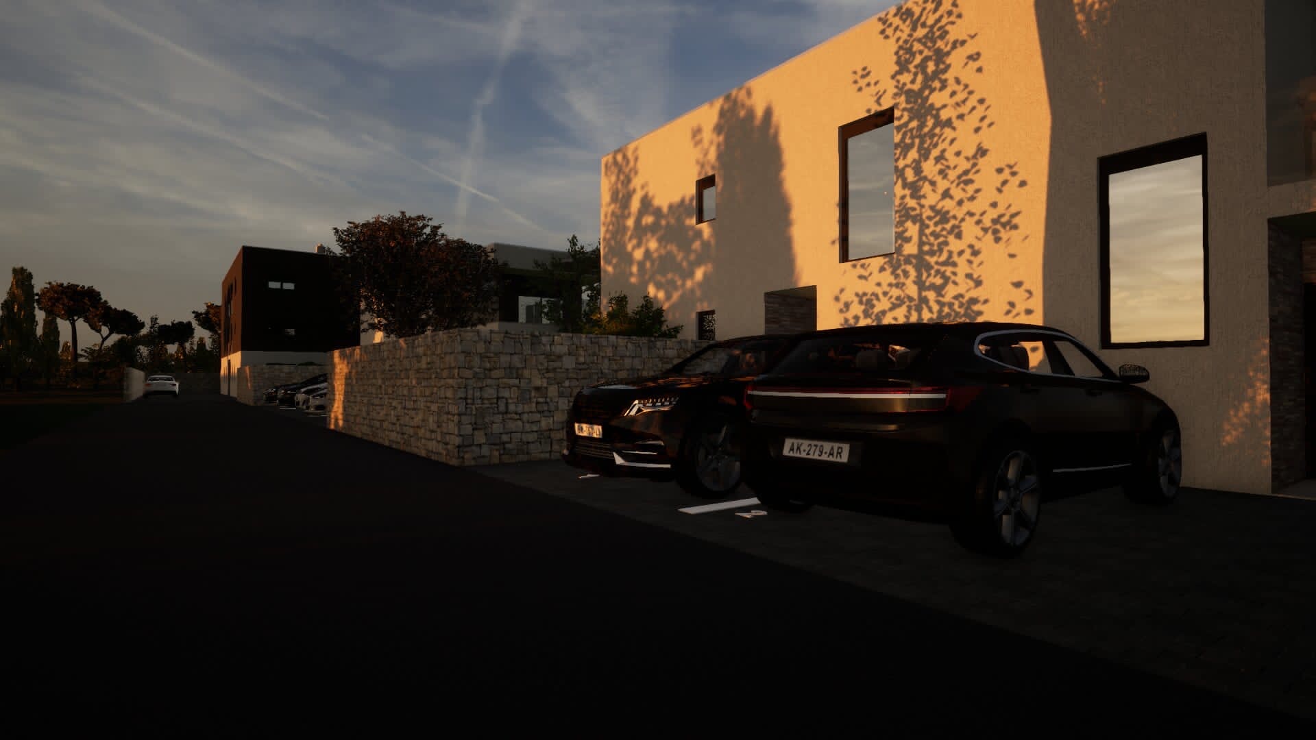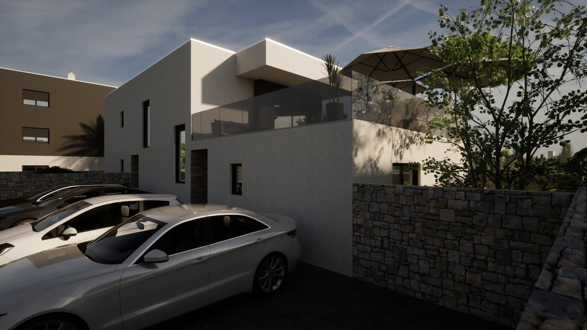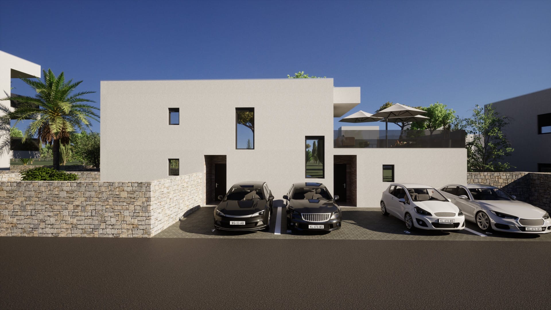 It has two parking spaces.