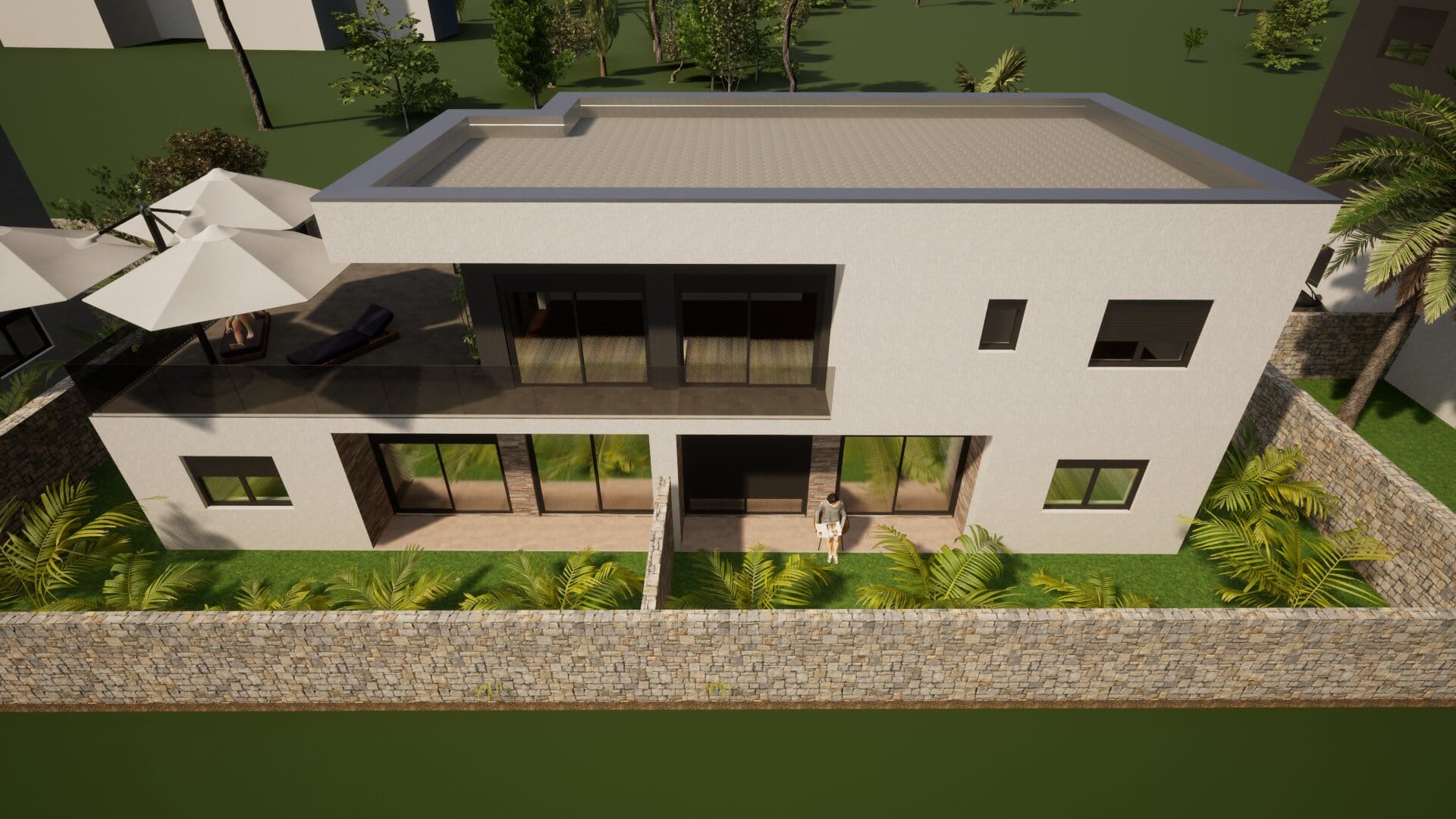 It consists of: two bedrooms, living room + kitchen + dining room, hallway, utility room, bathroom, toilet and terrace.