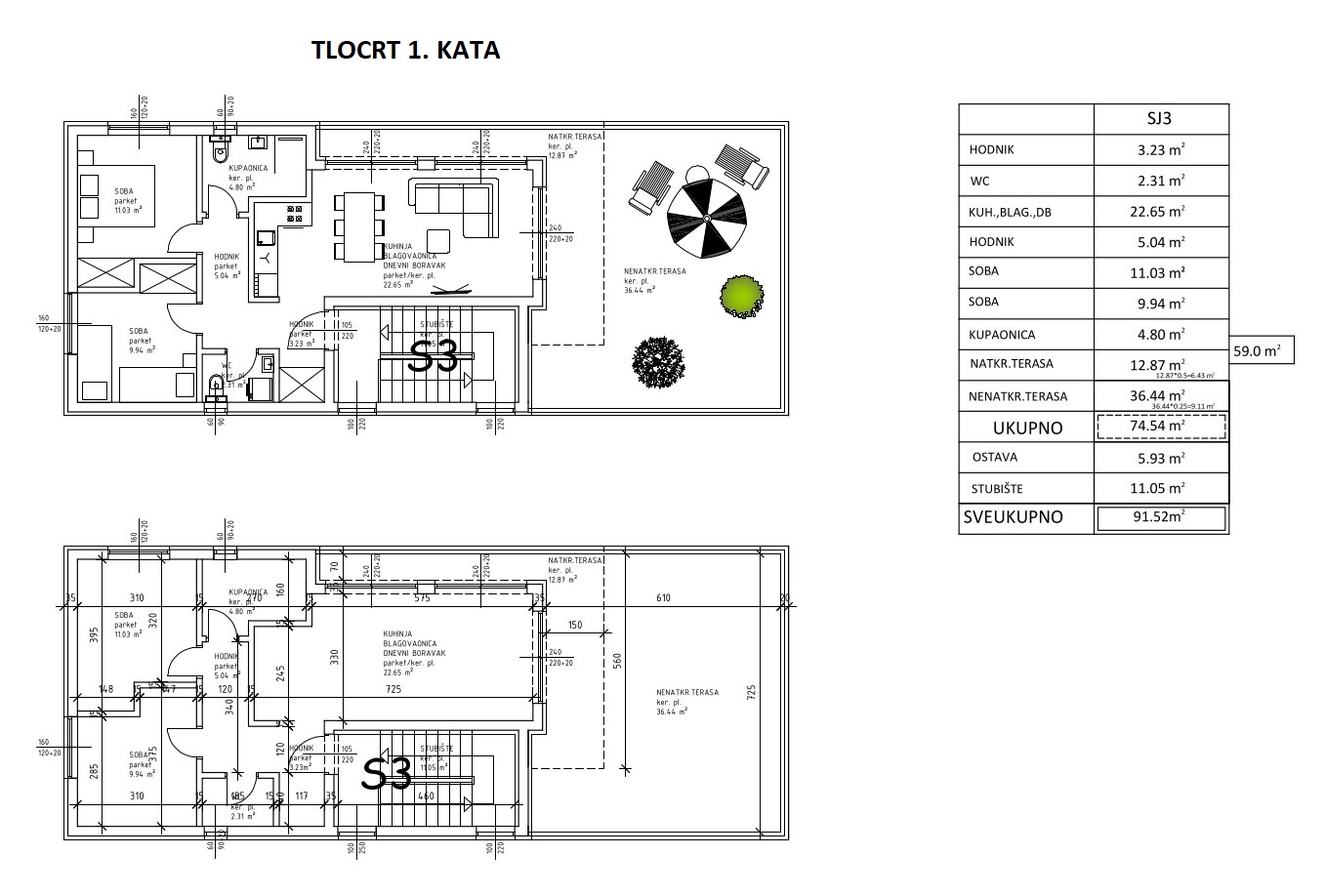 View the floor plan of apartment S3.