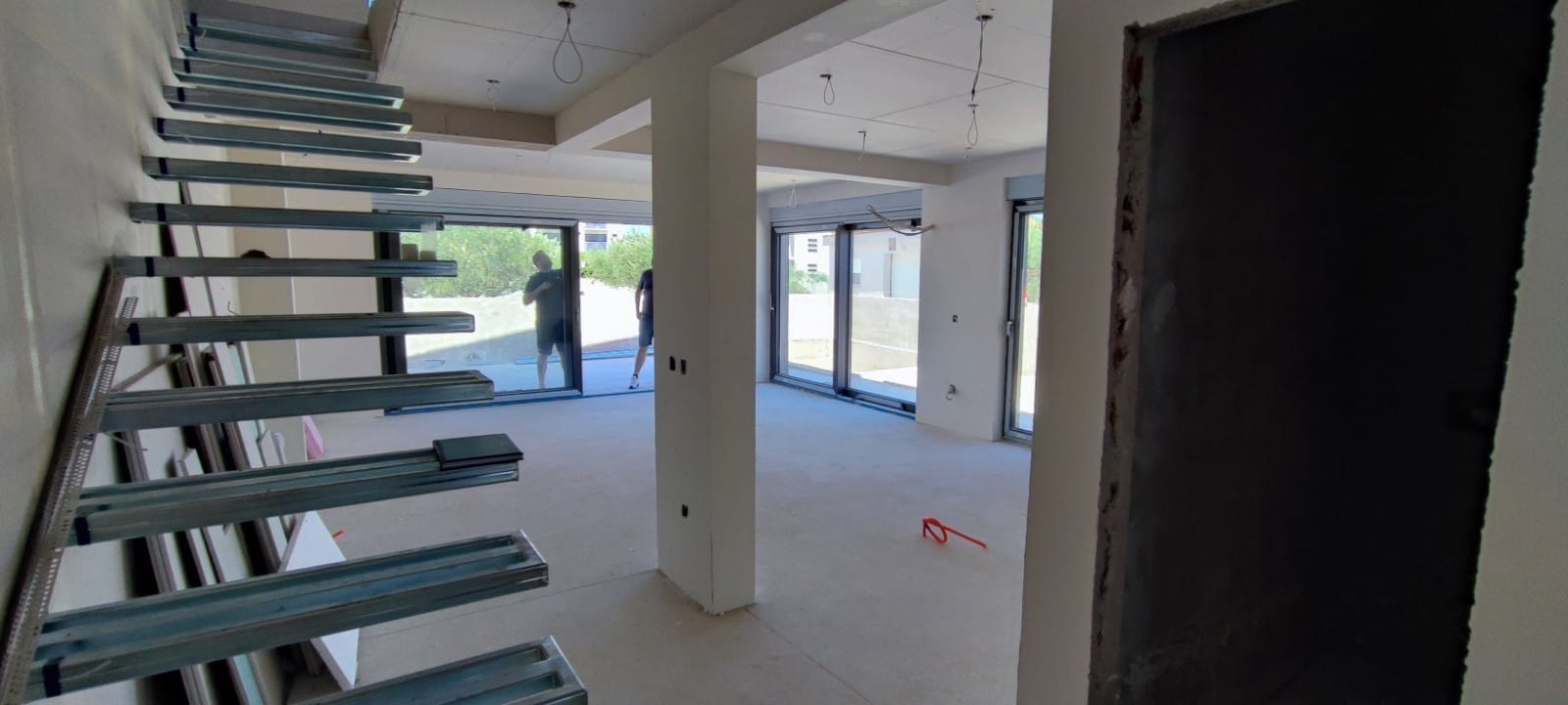 Zadar – Zaton, for sale, a two-storey house of 114.33 m2 living area, built on a plot of 243 m2, 2022, quality construction, recessed lighting, modern stairs, 1st-class parquet in the rooms, first-class Italian ceramics, PVC carpentry rehau 7 chamber, triple glazing, mosquito nets, motors in blinds, entrance aluminum door with code and fingerprint opening, living room and every room have air conditioning + bathrooms and living room have underfloor heating, electric car charger, cameras, etc… .