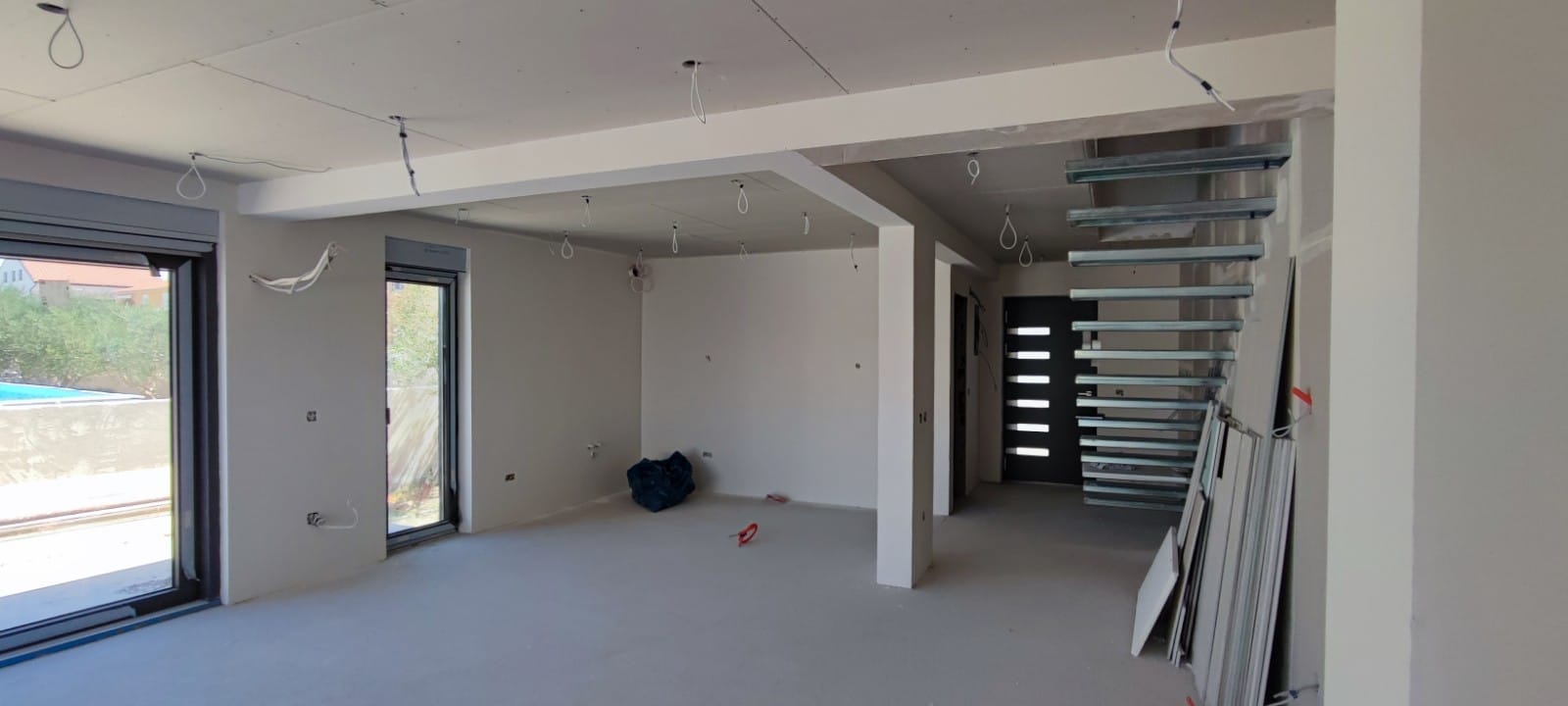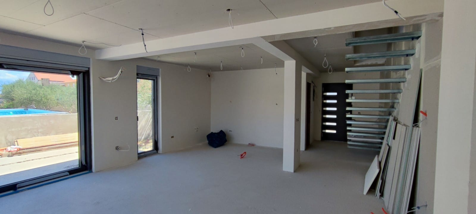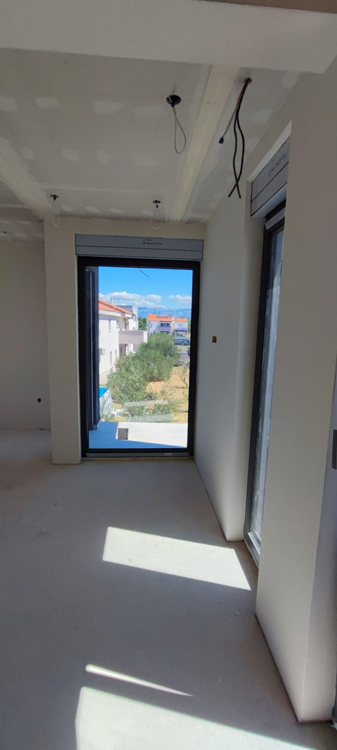 Zadar – Zaton, two-story, three-room apartment for sale, 114.33 m2 living area, built on a 243 m2 plot, 2022, quality construction, recessed lighting, modern stairs, 1st-class parquet in the rooms, first-class Italian ceramics, PVC carpentry rehau 7 chamber, triple glazing, mosquito nets, motors in blinds, entrance aluminum door with code and fingerprint opening, living room and every room have air conditioning + bathrooms and living room have underfloor heating, electric car charger, cameras, etc… .