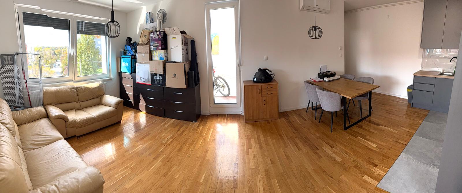 The apartment is located in a quiet and tidy street, close to all necessary amenities – schools, kindergartens, shops, public transport and other facilities needed for a pleasant everyday life.