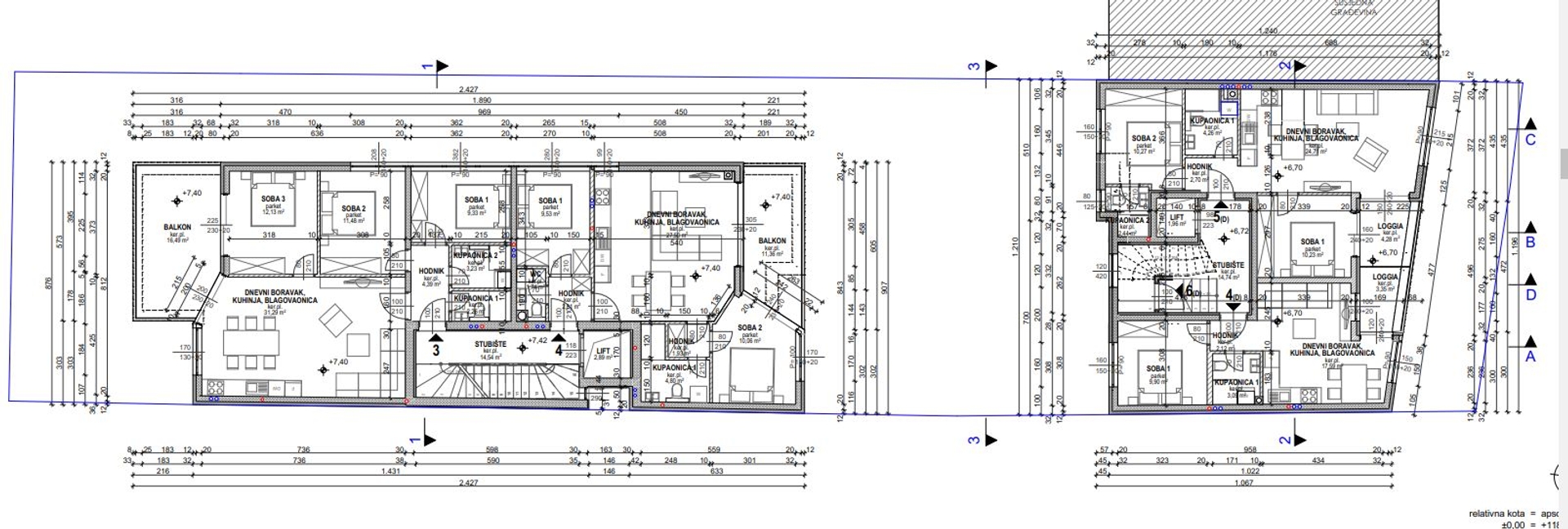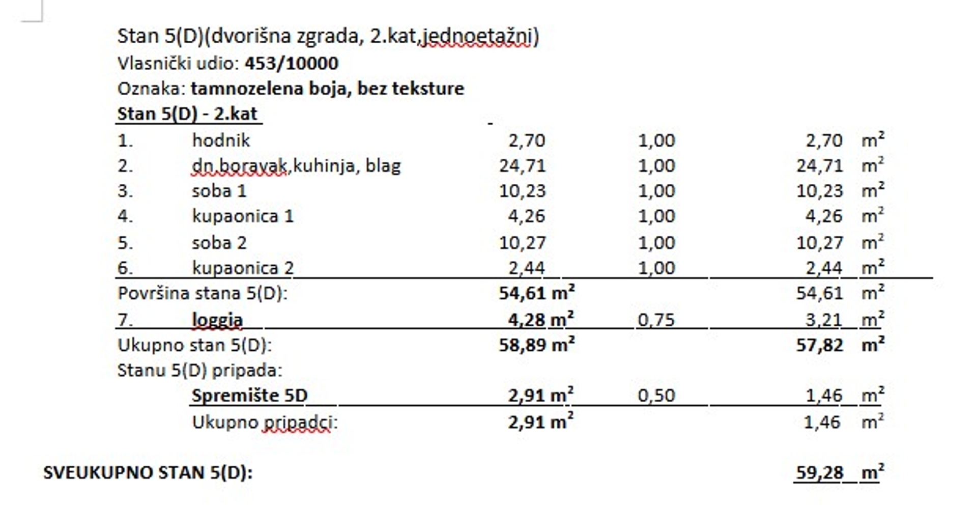 It consists of: two bedrooms, living room + kitchen + dining room, hallway, two bathrooms and a loggia.