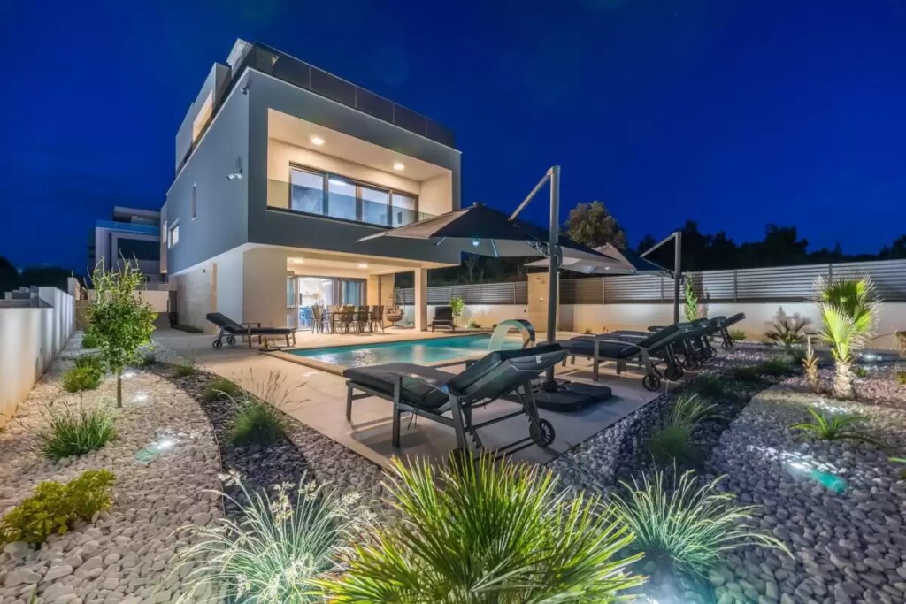 Zadar – Zaton, prodaje se samostojeća kuća katnica od 223,23 m2 stambene površine i 293 m2 okućnice izgrađena 2025 godine na zemljištu od 468 m2, visokokvalitetna gradnja. Sastoji se od prizemlja i kata: – prizemlje: predsoblje, dnevni boravak, kuhinja + blagovaona, spremište, wc i terasa. – kat: četiri spavaće sobe, četiri kupaonice, hodnik, dvije garderobe, […]