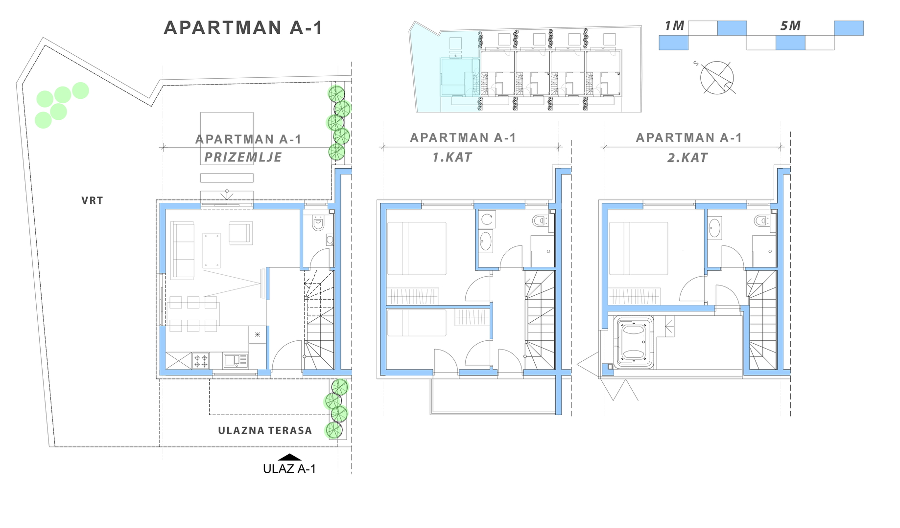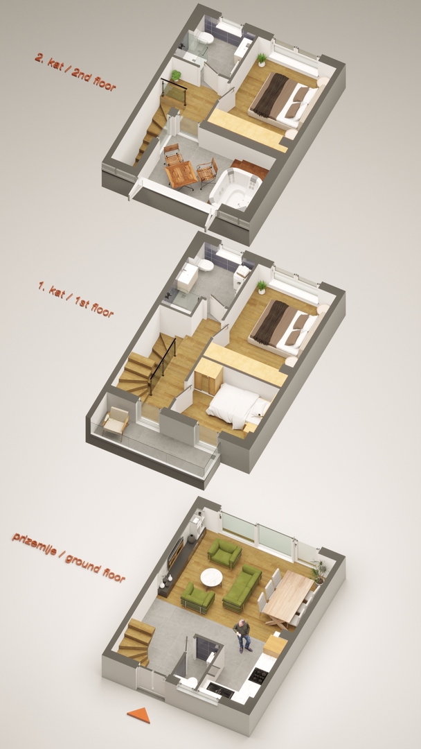 Novalja, prodaje se višetažni trosobni apartman od 107,24 m2 u objektu izgrađenom 2023 godine, kvalitetna gradnja, Arm.bet. konstrukcija propisane otpornosti na potres, pregradni zidovi – ytong i gips kartonski zidovi, vanjska stolarija PVC s roletama i kamenim klupčicama, 2. kat klizne aluminijske žaluzine za zasjenjenje i zatvaranje lođe, grijanje i hlađenje – dizalice topline – klimatizirani dnevni boravak i sve sobe, podno grijanje u kupaonicama, podovi- keramika i kamene ploče, zidovi i stropovi su ožbukani, gletani i obojeni, unutrašnja vrata – drvena lakirana, elektroinstalacije – Led rasvjeta, stropna i zidna, rasvjeta terase i vrta, oprema kupaonica – priprema tople vode (el. bojler), tuš u razini poda, komplet umivaonik sa ogledalom i ormarićem, wc, priključak za veš mašinu. . Sastoji se od prizemlja, kata i drugog kata. - prizemlje: dnevni boravak + kuhinja + blagovaona, predsoblje, wc i terasa. - kat: dvije spavaće sobe, kupaonica i balkon. - 2. kat: jedna spavaća soba, kupaonica i lođa. . IZ APARTMANA SE PRUŽA POGLED NA MORE!!! . Nalazi se na odličnoj lokaciji 250 m udaljen od mora i gradske plaže Lokunje, rekreacijske zone i gradske rive, blizina svih sadržaja potrebnih za ugodan i miran odmor!!!! . Posjeduje dva parkirna mjesta i vrt od 76,03 m2. . Dokumentacija uredna.