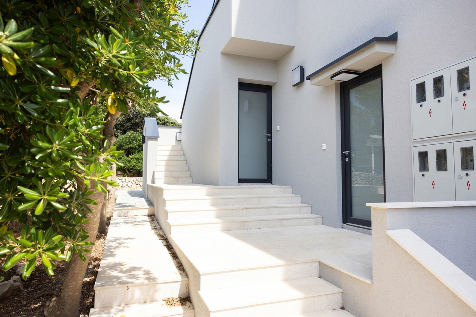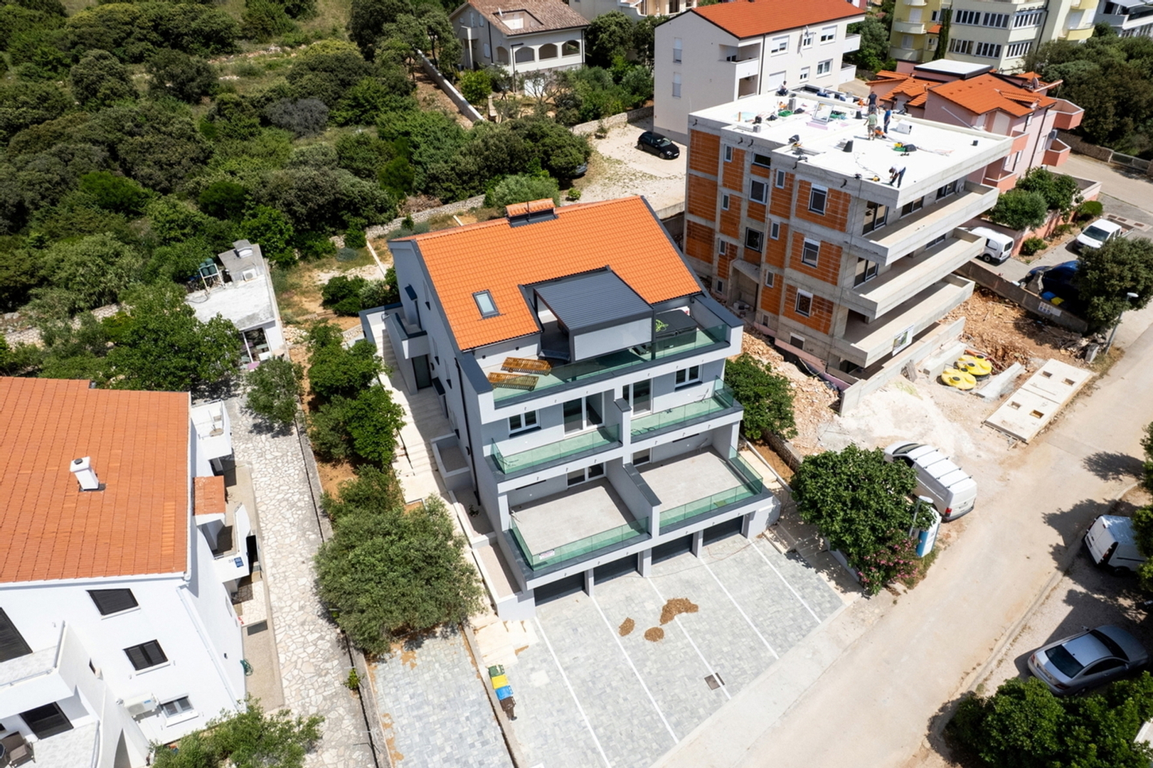 Pag – Mandre, prodaje se dvosobni apartman od 100,32 m2 na prvom katu stambenog objekta izgrađenog 2025 godine, kvalitetna gradnja. Sastoji se od: dvije spavaće sobe, dnevnog boravka + kuhinja + blagovaona, hodnika, ostave, dvije kupaonice i lođe. IZ APARTMANA SE PRUŽA POGLED NA MORE!! Nalazi se na odličnoj lokaciji 340 m udaljen od mora i plaže, blizina restorana, kafića, trgovine te svih ostalih sadržaja potrebnih za ugodan odmor!! Posjeduje garažu od 12,66 m2, parkirno mjesto, vrt od 76,54 m2 i spremište. Dokumentacija uredna.