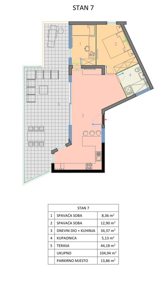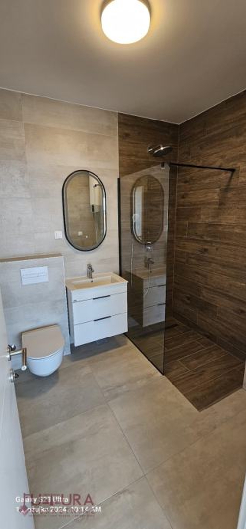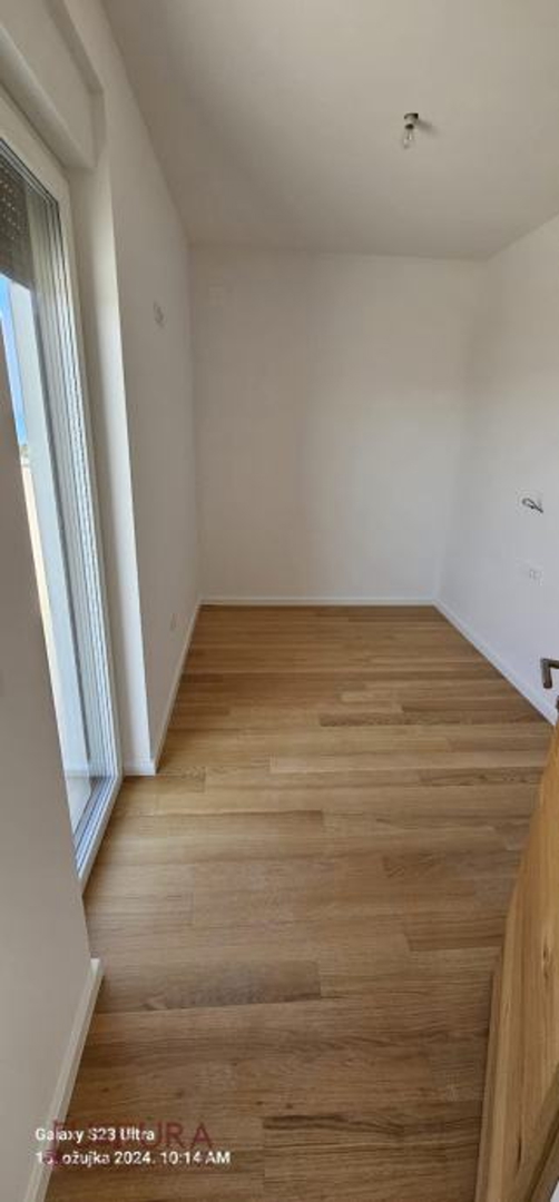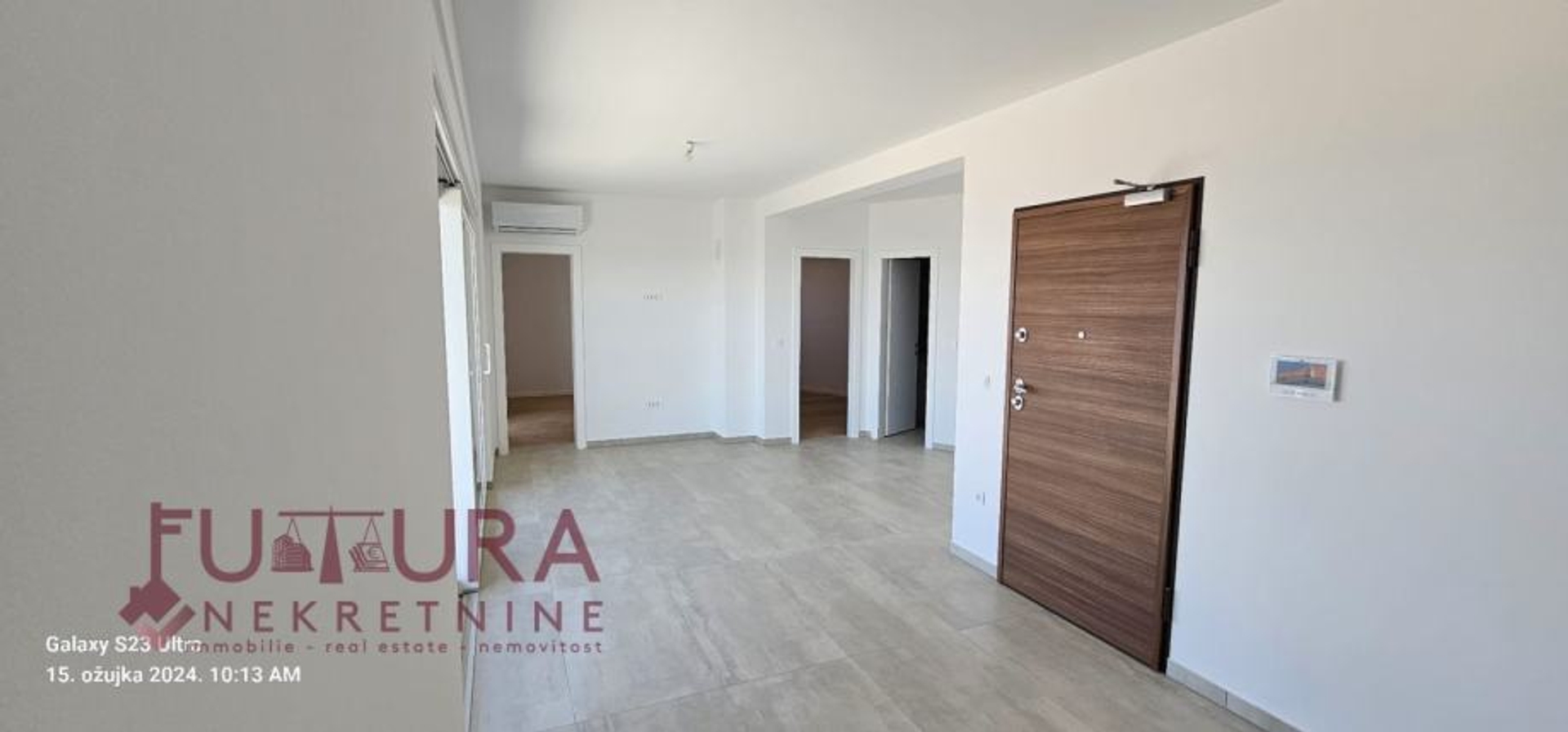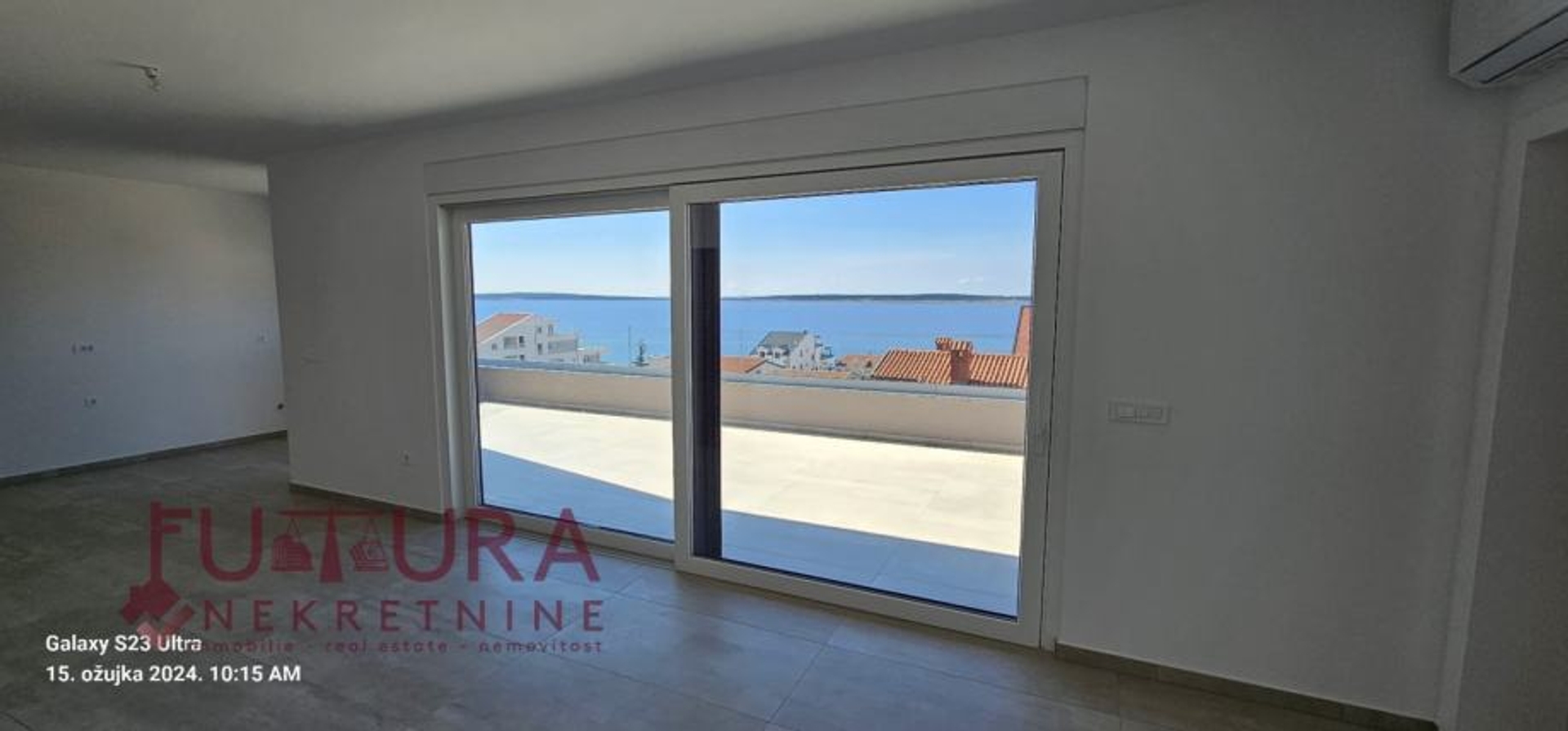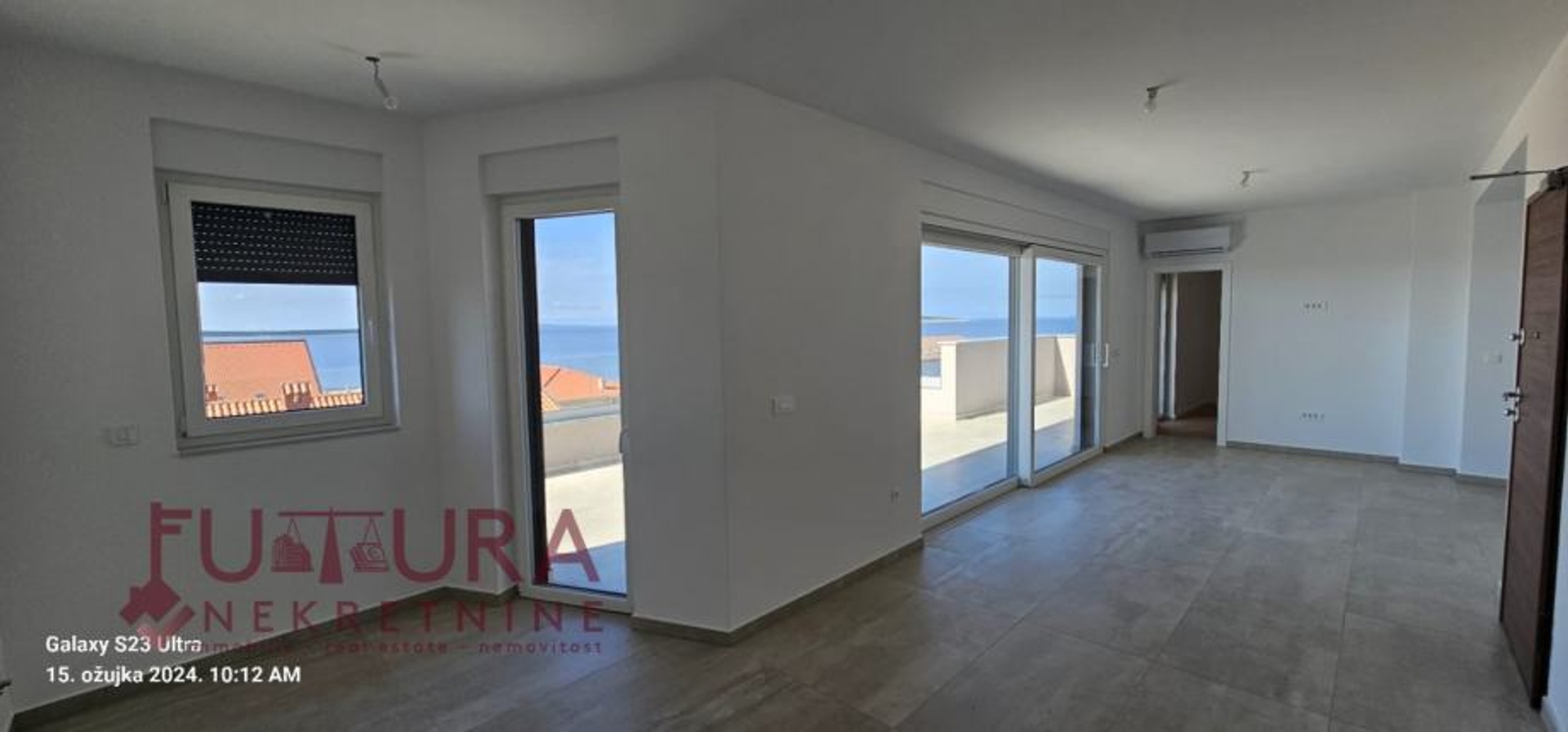 Pag – Mandre, prodaje se dvosobni apartman od 104,94 m2 tlocrtne površine na trećem katu stambenog objekta izgrađenog 2023 godine. Visokokvalitetna gradnja, armirano betonska konstrukcija, zidovi – Porotherm 25 Profi, pregradni zidovi – Porotherm 10 Profi, ravni krov 15 cm XPS, vanjski zidovi 8 cm EPS, završna obrada akril žbuka, keramika, staklena ograda na terasi na ALU nosačima, stolarija unutarnja jednokrilna drvena vrata hrast natur, protuprovalna i protupožarna ulazna vrata, vanjska PVC više komorna stolarija 3 stakla, boja izvana antracit, iznutra bijela, rolo komarnici, električno pokretna roleta na podizno kliznim stijenama, unutarnje kamene klupice, vanjske antracit klupice s brtvom, stubište popločano prirodnim kamenom, Inox ograda, sobe podna obloga troslojni hrastov parket, klima jedinica u svim sobama i dnevnom boravku, kupaonice podna i zidna obloga keramičke pločice 60 cm x 120 cm, Hansgrohe podžbukni tuš sistem + armature, premium umivaonik, GEBERIT ugradbeni vodokotlić + rimless WC školjka sa soft close daskom, radijator ljestve, zatravljeni okoliš sa zasađenim stablima agruma, kamenom popločan parking, priprema instalacije za punjače za električna vozila, video portafon, priprema za TV u sobama… . Sastoji se od: dvije spavaće sobe, dnevnog boravka + kuhinja + blagovaona, kupaonice i terase. . IZ APARTMANA SE PRUŽA POGLED NA MORE!!! . Nalazi se na odličnoj lokaciji 140 m udaljen od mora i plaže, blizina kafića, konobe, trgovine te svih sadržaja potrebnih za ugodan i miran odmor!!! . Posjeduje parkirno mjesto. . Dokumentacija uredna.