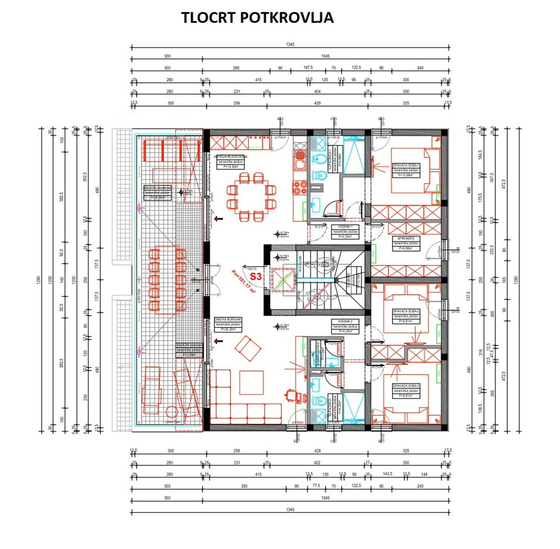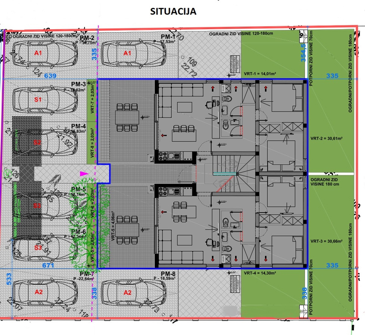 Pag – Mandre, prodaje se četverosobni apartman od 118,99 m2 na drugom katu stambenog objekta u izgradnji, kvalitetna gradnja, planirano useljenje 02/2025. . Sastoji se od: četiri spavaće sobe, dnevnog boravaka + kuhinja + blagovaona, hodnika, dvije kupaonice, wc-a i terase. . IZ APARTMANA SE PRUŽA POGLED NA MORE!!! . Nalazi se na odličnoj lokaciji 250 m udaljena od mora i plaže, blizina kafića, restorana, trgovine te svih ostalih sadržaja potrebnih za ugodan i miran odmor!!! . Posjeduje dva parkirna mjesta i vrt od 4,06 m2. . Dokumentacija uredna. . Gledati tlocrt apartman oznake S3.