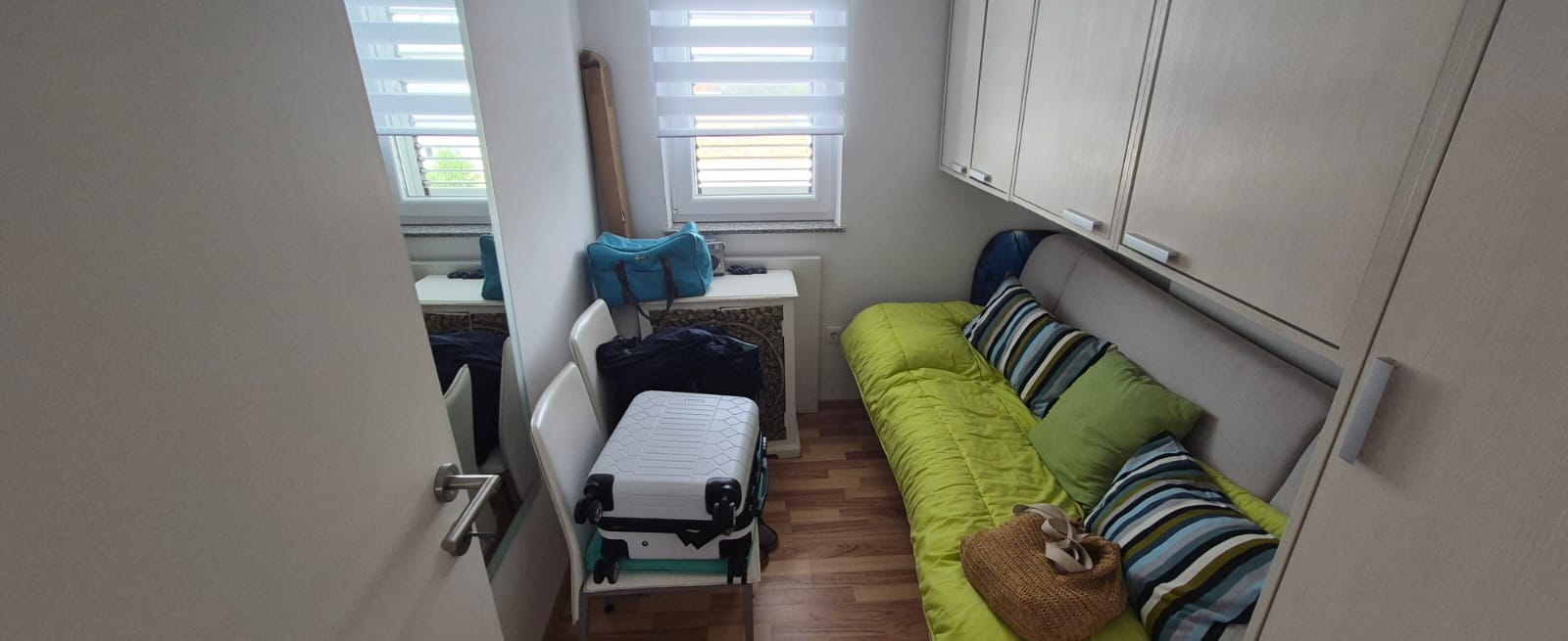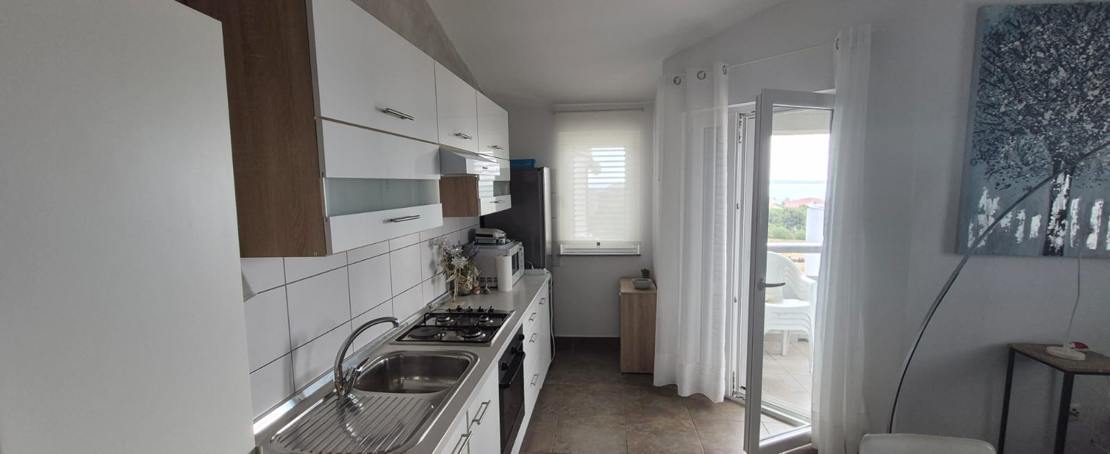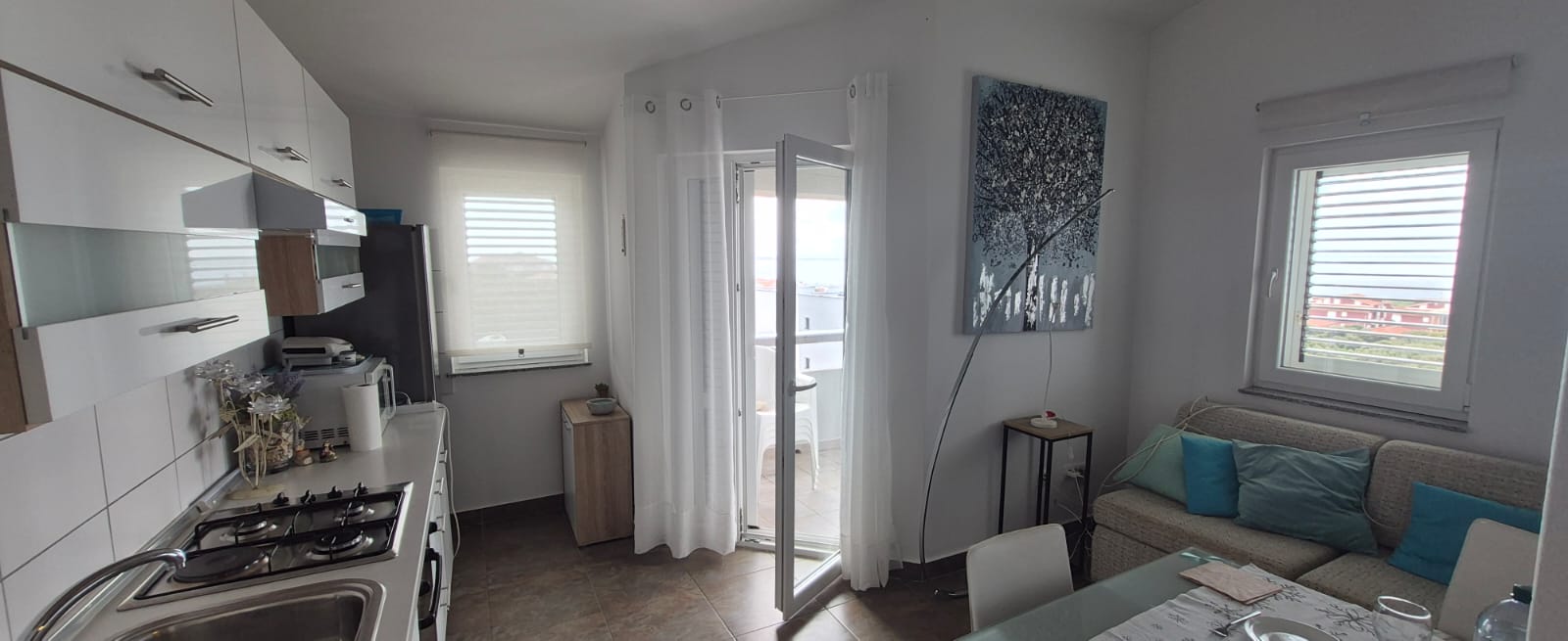 Pag – Mandre, prodaje se dvosobni apartman od 35,13 m2 na drugom katu stambenog objekta izgrađenog 2017 godine sa ukupno devet apartmana, kompletno namješten. Sastoji se od: dvije spavaće sobe, dnevnog boravka + kuhinja + blagovaona, kupaonice i balkona. IZ APARTMANA SE PRUŽA POGLED NA MORE!!! Nalazi se na dobroj lokaciji 370 m udaljen od mora i lučice, 500 m od plaže, blizina svih potrebnih sadržaja za ugodan i miran odmor!! Posjeduje parkirno mjesto. Dokumentacija uredna.