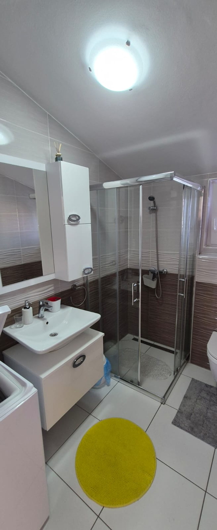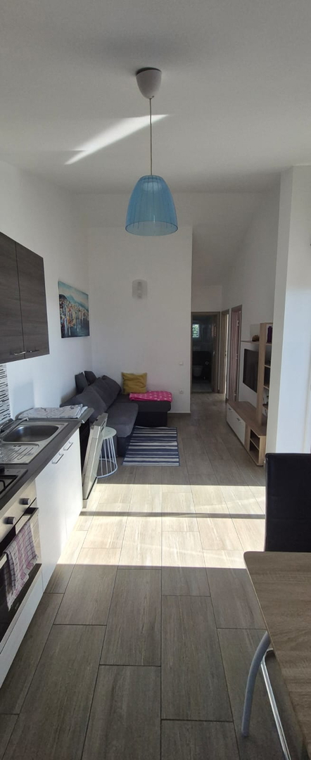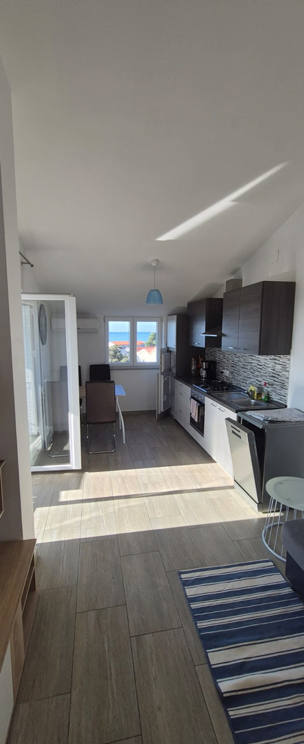 Pag – Mandre, prodaje se dvosobni apartman od 48,59 m2 na drugom katu stambenog objekta sa ukupno šest apartmana izgrađenog 2019 godine, kompletno namješten. Sastoji se od: dvije spavaće sobe, dnevnog boravka + kuhinja + blagovaona, hodnika, kupaonice i terase. IZ APARTMANA SE PRUŽA POGLED NA MORE!!! Nalazi se na dobroj lokaciji 110 m udaljen od mora i plaže, blizina trgovine, kafića, restorana te svih ostalih sadržaja potrebnih za ugodan odmor!!! Posjeduje parkirno mjesto. Dokumentacija uredna. Specifikacija površina: – stambena površina 41,35 m2 – terasa 9,47 m2 – parkirno mjesto 12,50 m2.