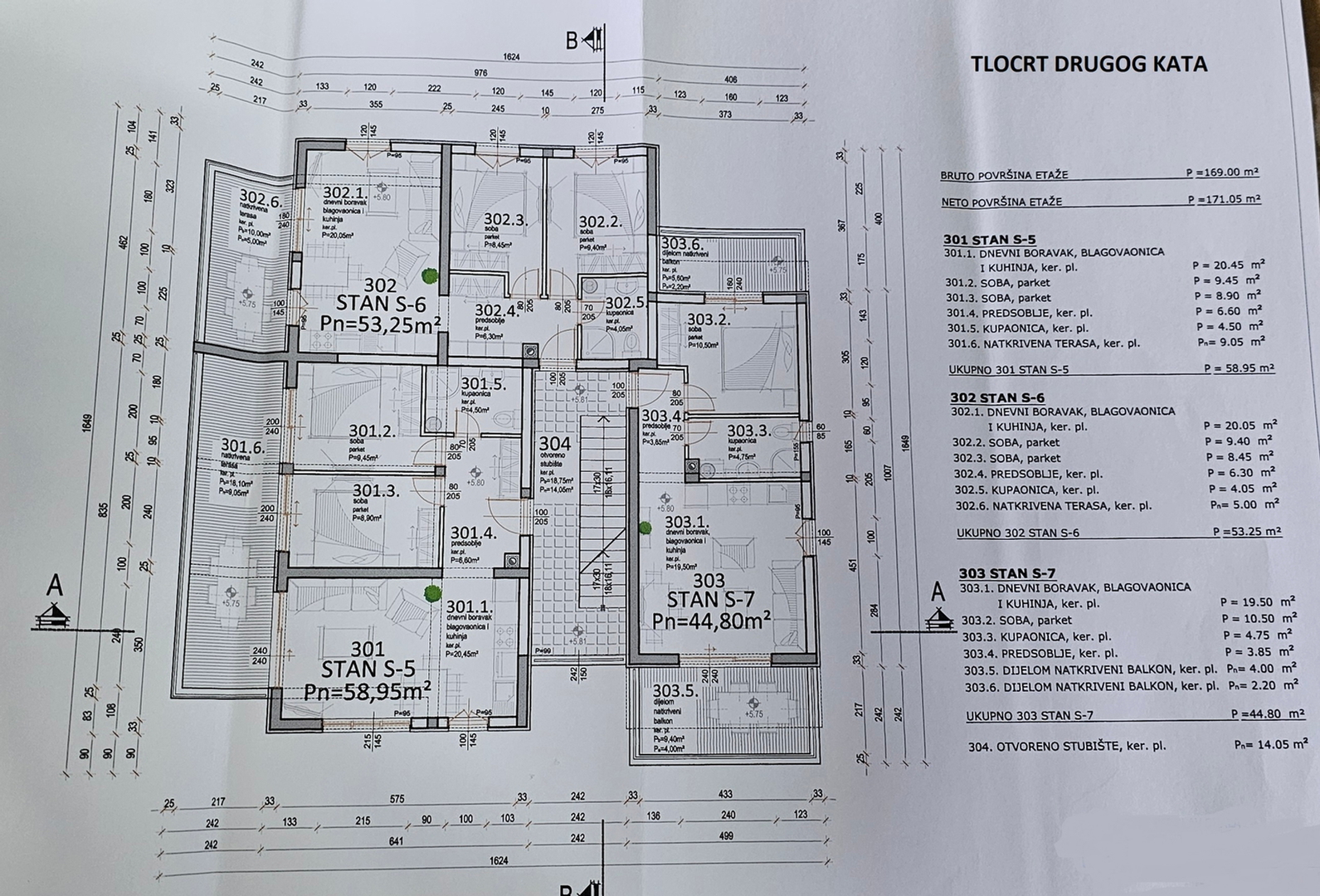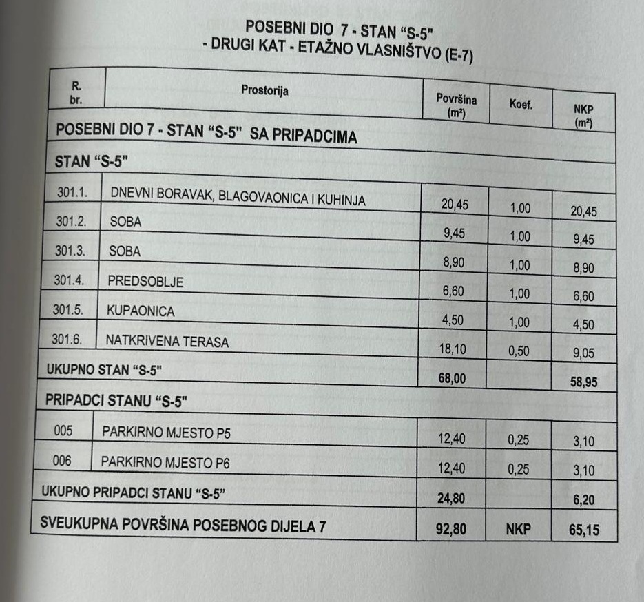Pag – Mandre, prodaje se dvosobni apartman od 65,15 m2 na drugom katu stambenog objekta sa ukupno osam apartmana izgrađenog 2025 godine, kvalitetna gradnja. Sastoji se od: dvije spavaće sobe, dnevnog boravka + kuhinja + blagovaona, predsoblja, kupaonice i natkrivene terase. IZ APARTMANA SE PRUŽA POGLED NA MORE!!! Nalazi se na odličnoj lokaciji 340 m udaljen od mora i plaže, 260 m od lučice i Konzuma, blizina svih potrebnih sadržaja za ugodan odmor!!! Posjeduje dva parkirna mjesta. Dokumentacija uredna. Gledati tlocrt apartman oznake S-5.