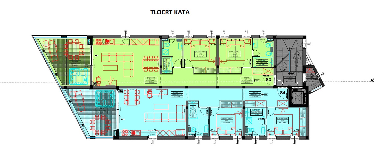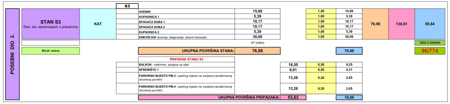 Pag – Mandre, prodaje se dvosobni apartman od 95,84 m2 na prvom katu stambenog objekta sa ukupno šest apartmana u izgradnji, planirano useljenje ljeto/2026. Sastoji se od: dvije spavaće sobe, dnevni boravak + kuhinja + blagovaona, hodnik, dvije kupaonice i terasa. IZ APARTMANA SE PRUŽA PREDIVAN OTVOREN POGLED NA MORE!!! Nalazi se na izvrsnoj lokaciji 10 m udaljen od mora i plaže (prvi red), blizina svih potrebnih sadržaja za ugodan odmor!!! Posjeduje dva parkirna mjesta i spremište od 8,61m2. Zgrada ima lift. Gledati tlocrt apartman oznake S3. Dokumentacija uredna.