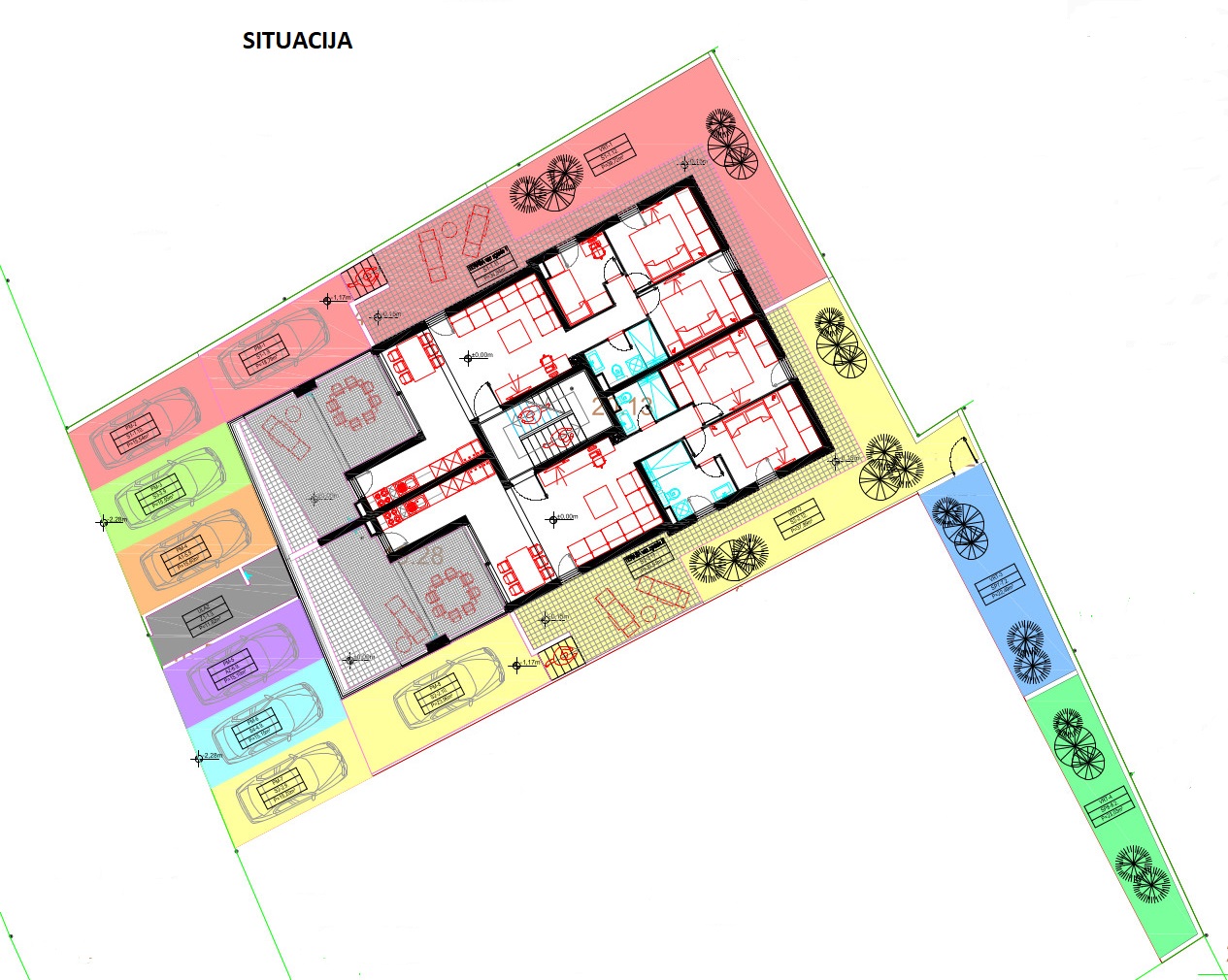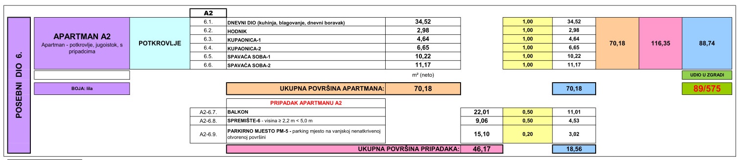 Pag – Šimuni, prodaje se dvosobni apartman od 102,49 m2 na drugom katu stambenog objekta u izgradnji sa ukupno šest apartmana, kvalitetna gradnja, podno grijanje u kupaonicama, klima uređaji u svim prostorijama, staklene ograde na terasama, protuprovalna i vatrootporna vrata, itd…. . Sastoji se od: dvije spavaće sobe, dnevnog boravka + kuhinja + blagovaona, hodnika, dvije kupaonice i terase. . IZ APARTMANA SE PRUŽA POGLED NA MORE!!! . Nalazi se na odličnoj lokaciji 190 m udaljen od mora i plaže, 850 m od predivne plaže u borovoj šumi, blizina samog centra mjesta te svih sadržaja potrebnih za ugodan odmor!!! . Posjeduje parkirno mjesto, krovnu terasu od 55 m2 i spremište od 9,06 m2. . Dokumentacija uredna. . Tlocrt gledati apartman oznake A2. Opis gradnje: • gradnja sa najmodernijim materijalima termoizolacije, • sustav grijanja i hlađenja / klimatizacije pomoću klima jedinica proizvođača LG . U svim stanovima ugrađeno je električno podno grijanje te opcija ugradnje peći na kruta goriva • u svakoj kupaonici nalazi se spremnik tople sanitarne vode obujma 80 litara proizvođača Electrolux ili Ariston upravljan putem WIFI • protuprovalna zaštita, protupožarna zaštita • sustav pametne kuće – upravljanje grijanjem i hlađenjem, roletama putem aplikacija, video portafon • priprema za kamin (ako ga ima) sa zračnikom za dopremu vanjskog zraka • protupotresna betonska hidro i termo izolirana temeljna ploča, zidano opekom Wienerberger Porotherm Profi 25cm + termo fasada od stiropora debljine 10 cm proizvođača STO • unutrašnja st zgrada je ožbukana termo žbukom debljine 3cm • krovna termo izolacija debljine 20 cm • sve vanjske površine su izolirane sa 3 sloja hidroizolacije te je odvodnja realizirana upotrebom premium sifona proizvođača HL • pvc vanjska stolarija sa troslojnim izo staklima, punjenim argonom, električnim roletama i komarnicima proizvođača Kommerling • protuprovalna ulazna vrata proizvođača Dierre, videoportafon, sobna vrata od punog drva sa nevidljivim pantima, magnetskom bravom i obuhvatnim štokom • keramika 1. klase formata 60×120 postavljena po cijeloj zgradi upotrebom premium proizvođača a ljepila i hidroizolacije SOPRO • parkirna mjesta su veličine 15M2 sa ugrađenim punionicama za električna vozila koja su unaprijed prespojena na broj svakog stana • protupožarni sustav zaštite sa alarmom i automatskim odimljavanjem • prostrana spremišta kod ulaza u zgradu, instalacije svakog spremišta su povezane na brojila vlastitog stana • na balkonima se nalaze granitne ploče sa lameliranom staklenom ogradom • na balkonu svakog stana predviđena je ugradnja vanjskog jacuzzi-a te su izvedene instalacije (dovod i odvodnja vode i električna energija) za vanjski roštilj ili kuhinju • parking je popločan opločnicima proizvođača Semmelrock sa solarnim podnim osvjetljenjem • sanitarni čvorovi opremljeni su materijalima proizvođačima TECE, Hans Grohe, Villeroy Boch itd • stubište i prilazna rampa zgrade je popločana mramornim pločama• zidovi okoliša obljepljeni kamenom.