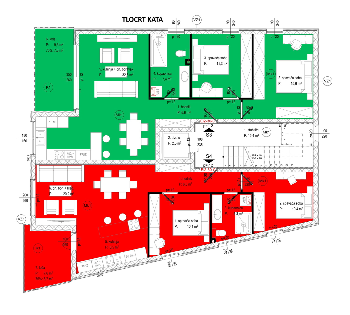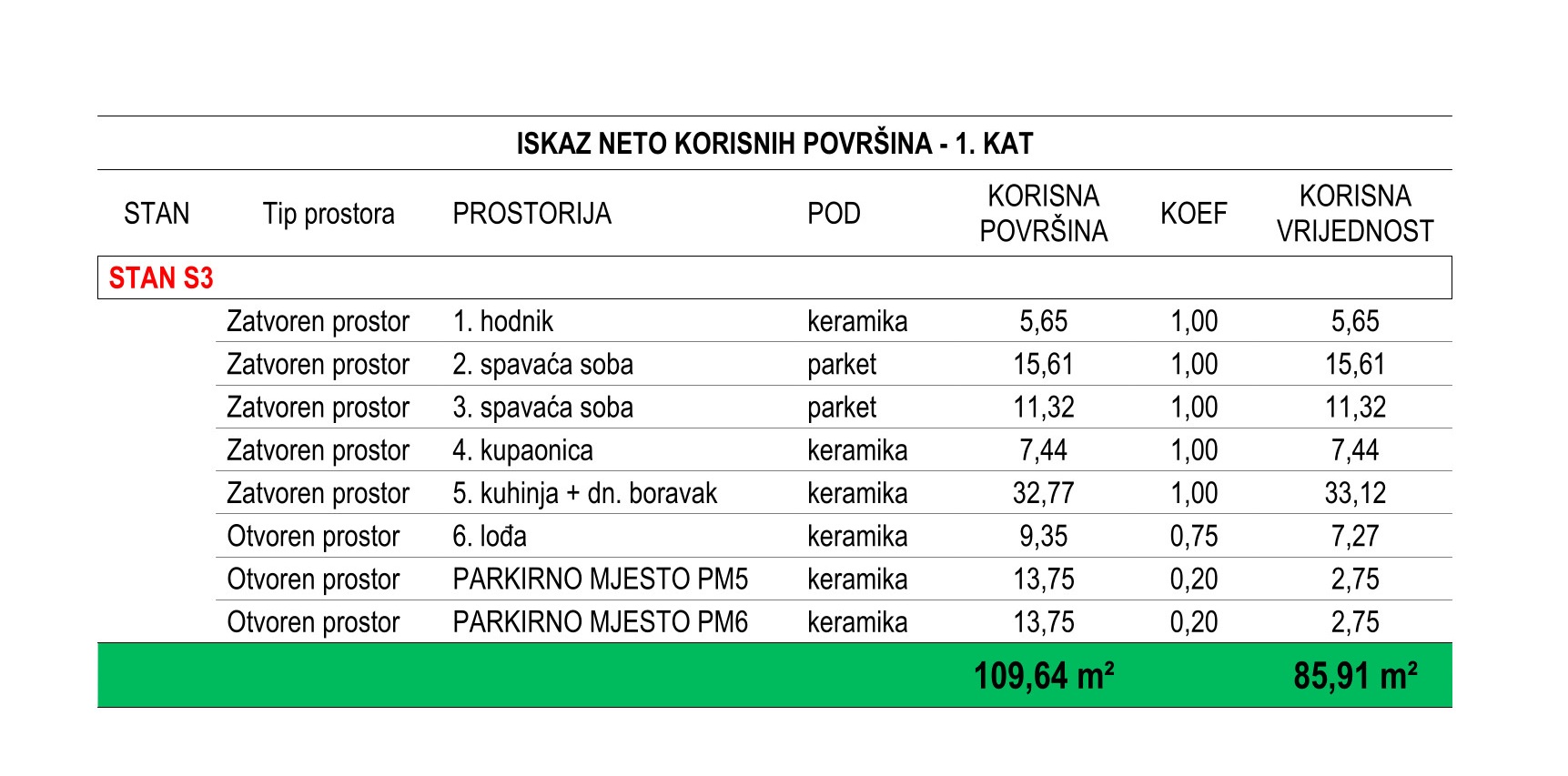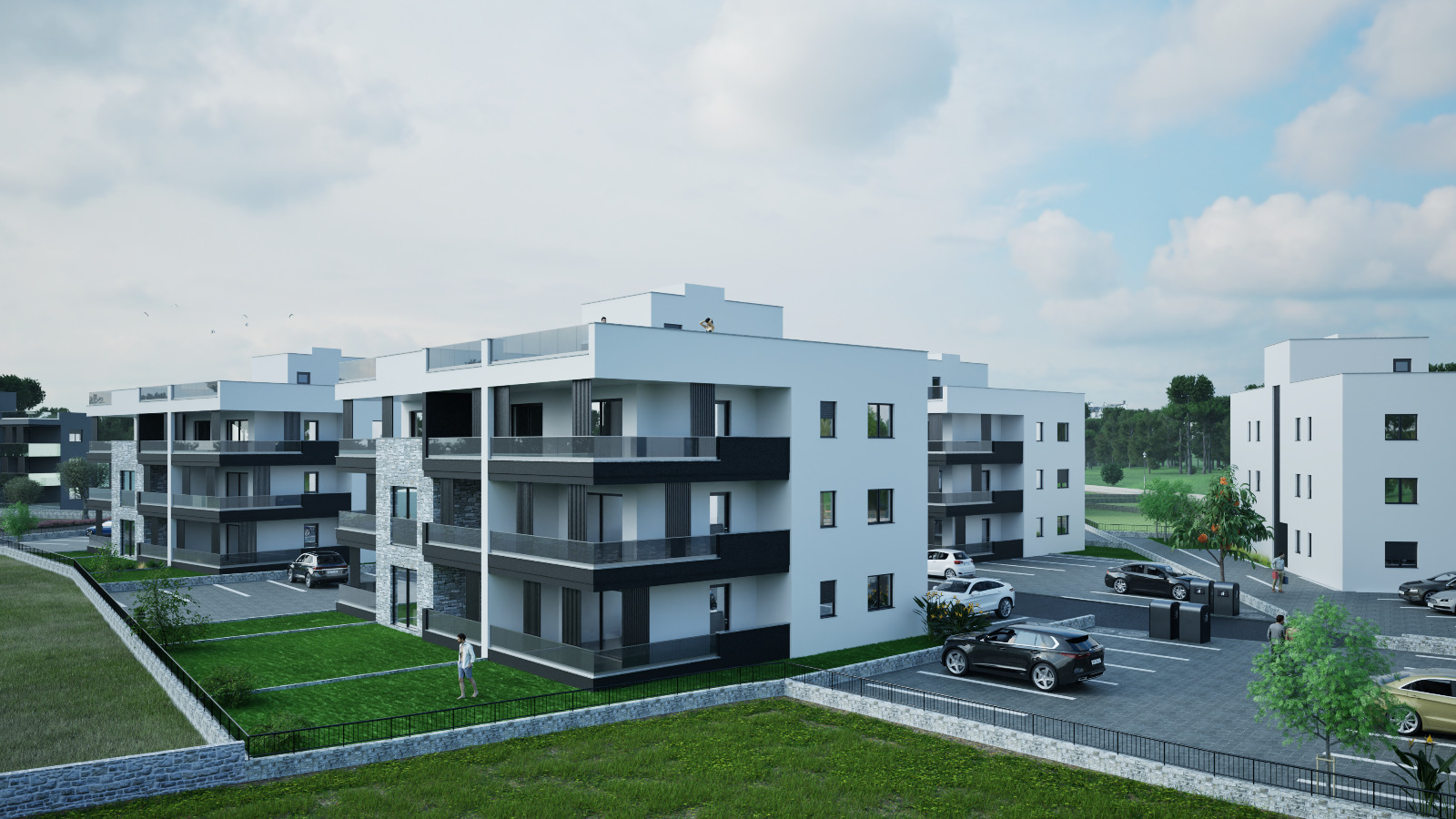 Zadar – Crvene Kuće, prodaje se dvosobni stan od 85,91 m2 na prvom katu stambenog objekta u izgradnji sa ukupno šest stanova, planirano useljenje 2026 godine. Sastoji se od: dvije spavaće sobe, dnevnog boravka + kuhinja + blagovaona, hodnika, kupaonice i lođe. Nalazi se na mirnoj lokaciji 2500 m udaljen od plaže, centra grada, blizina trgovine, trgovačkih centara, škole, vrtića te svih ostalih sadržaja potrebnih za ugodan i miran život! Posjeduje dva parkirna mjesta. U sklopu objekata bit če uređen park porvršine od 1500 m2. Dokumentacija uredna. Gledati tlocrt stan oznake S3. O ZGRADI: Kvalitetna gradnja, zidovi stanova, armirano-betonski, obostrano su žbukani, gletani i ličeni u minimalno 2 navrata, pregradni zidovi unutar stanova su gipskartonski debljine 12cm, podovi stanova unutar kupaonica, kuhinja, hodnika, na terasama i loggiama, obloženi su keramičkim pločicama, dok su spavaće sobe obložene klasičnim hrastovim parketom, stolarija – ulazna vrata u stanove su protuprovalna i vatrootporna s obuhvatnim štokovima, vrhunska unutarnja stolarija je u bijeloj boji sa utorima, sanitarna oprema visoke je kvalitete poznatih svjetskih proizvođača (tipa "Grohe"), WC školjke su konzolne s podžbuknim Geberit vodokotlićem, grijanje i hlađenje stana je putem "LG" inverterskih multi-split dizalica toplina zidne izvedbe, za grijanje i pripremu tople vode koriste se električni bojleri, stanovi su opremljeni digitalnim WI-FI termostatom za podno grijanje u dnevnom boravku i sanitarnim čvorovima, umjetna ventilacija osigurana je bešumnim ventilatorima u sanitarnim prostorijama koje nemaju prirodno provjetravanje, a ventilacija kuhinja osigurana je cijevima za odsis napa dovedenim do pozicija štednjaka predviđenim projektom, videoportafon, priprema za elektro punjenje automobila za svaki stan putem vlastitog brojila. Armirano-betonska konstrukcija zgrade, svijetla visina stambenih prostora iznosi 260 cm, krov zgrade izvodi se kao ravni prohodni s parnom branom, slojem termoizolacije 15cm, TPO folijom otpornom na UV zrake i korijenje, Ac estrihom, PC hidroizolacijom i keramičkim pločicama kao završnim slojem, fasada zgrade izvodi se po sistemu „ETICS“ 10cm stiropora sa dekorativnom žbukom na mineralnoj osnovi ekstremne postojanosti, a dio južnog pročelja će biti dodatno obložen dekorativnom oblogom, vanjska stolarija je PVC stolarija vrhunskog njemačkog proizvođača vanjske i unutarnje antracit boje s višekomornim profilima, ostakljena izo LOW-e troslojnim staklom i s pripadajućom kutijom za elektro alurolete punjene poliuretanom sa komarnicima, vanjske prozorske klupice su aluminijske, a unutarnje kamene, stubište zgrade je kroz sve etaže opremljeno dizalom, videonadzor vanjskog prostora zgrade, priključak na sustav javne odvodnje, okoliš hortikulturno uređen.