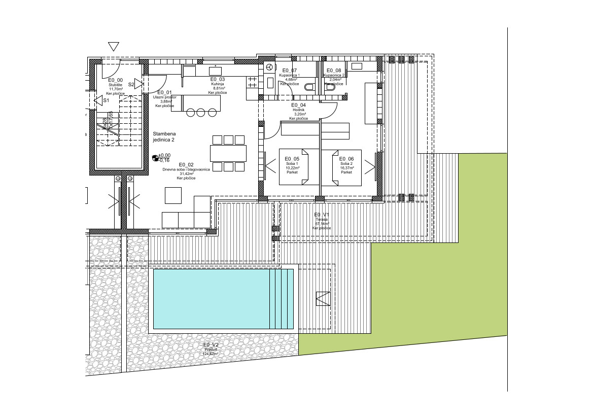 Zadar – Privlaka (Škrapavac), prodaje se luksuzni dvosobni apartman od 147,76 m2 u prizemlju stambenog objekta sa ukupno šest apartmana izgrađenog 2025 godine. Visokokvalitetna gradnja, fasada 10cm stiropor, stolarija Rehau 7 komora sa velikim kliznim stijenama, roletama na struju i komarnicima, podno grijanje sa wifi termostatom u kupaonicama, blagavoni i dnevnom boravku, sanitarije Villeroy & Boch i Hansgrohe, klima uređaj u svakoj prostoriji, keramika A klase, itd… . Sastoji se od: dvije spavaće sobe, dnevnog boravka + kuhinja + blagovaona, hodnika, dvije kupaonice i terase. . IZ APARTMANA SE PRUŽA POGLED NA MORE!!! . Nalazi se na izvrsnoj lokaciji 55 m udaljen od mora i plaže (drugi red), blizina svih potrebnih sadržaja za ugodan i miran odmor!!! . Posjeduje dva parkirna mjesta, vrt od 126,47 m2 i bazen dimenzija 3m x 7m. . Dokumentacija uredna.