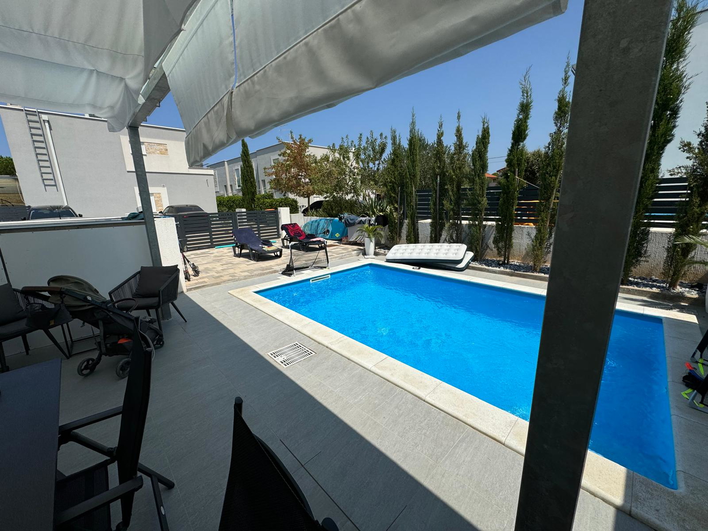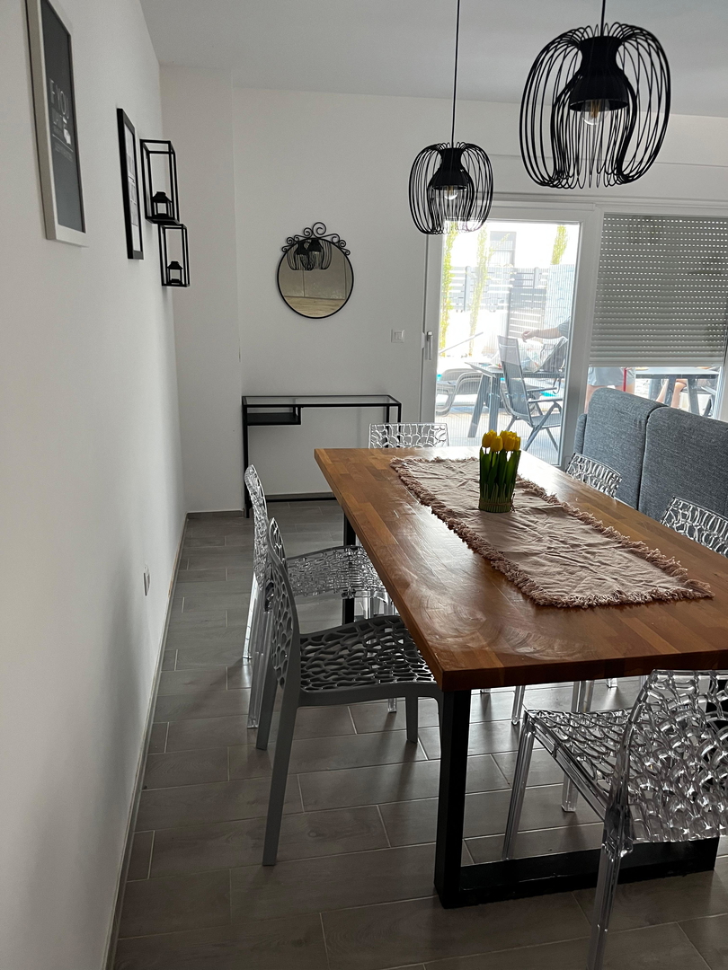 Zadar – Ugljan (Batalaža), prodaje se dvoetažni četverosobni apartman od 115.40 m2 u prizemlju stambenog objekta izgrađenog 2022 godine, kvalitetna gradnja, PVC stolarija, protuprovalna vrata, termo fasada, keramika visoke kvalitete, u sobama parketi, klimatizacija, itd… . Sastoji se od dvije etaže: - prizemlje: jedna spavaća soba, dnevni boravak + kuhinja + blagovaona, predsoblje, kupaonica i terasa. - kat: tri spavaće sobe, predsoblje, kupaonica i lođa. . Nalazi se na mirnoj lokaciji 350 m udaljen od mora i plaže, blizina svih potrebnih sadržaja za ugodan i miran odmor na otoku!!! . Posjeduje tri parkirna mjesta, automatizirani bazen od 18m2 i vrt cca 70 m2. . Prodaje se kompletno namješteno i opremljeno. . Dokumentacija uredna. .