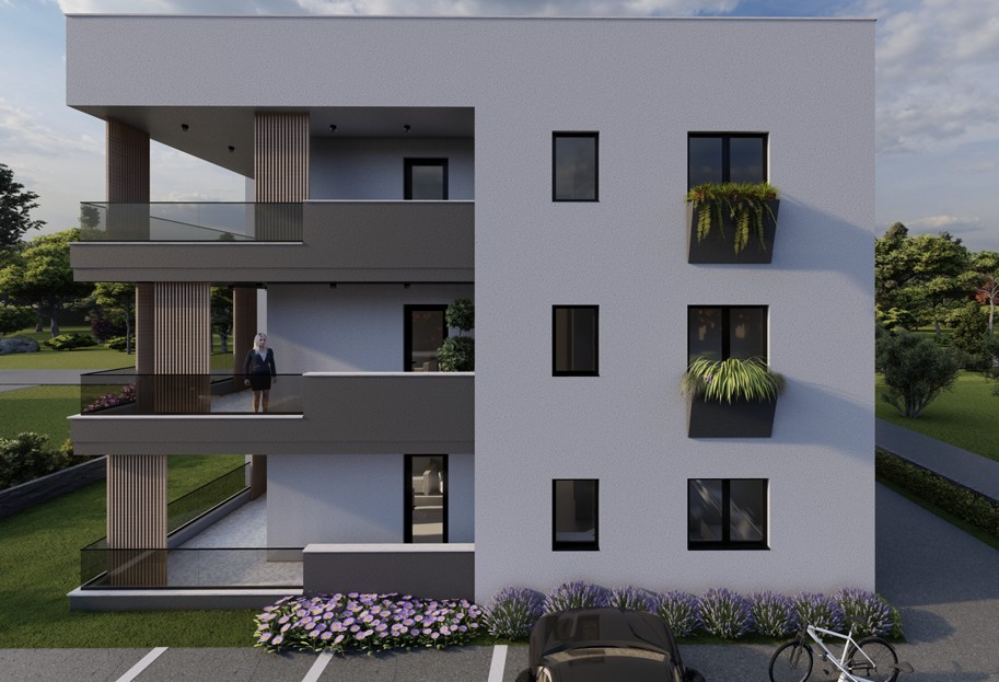 Zadar – Vidikovac, prodaje se dvosobni stan od 81,19 m2 na prvom katu stambenog objekta sa ukupno devet apartmana u izgradnji, planirano useljenje kraj/2026. godine. Sastoji se od: dvije spavaće sobe, dnevnog boravka + kuhinja + blagovaona, hodnika, kupaonice, wc-a i terase. Nalazi se na mirnoj lokaciji 1500 m udaljen od mora i plaže, 2000 m od centra grada, blizina trgovine, škole, vrtića te svih ostalih sadržaja potrebnih za ugodan život i odmor!! Posjeduje dva parkirna mjesta. Dokumentacija uredna. Gledati tlocrt stan oznake S4. GRADNJA: koriste se visokokvalitetni materijali, armirano-betonska konstrukcija s termo fasadom debljine 10 cm, PVC troslojna stolarija s električnim roletama i komarnicima, lift, parket vrhunske kvalitete u sobama te u dnevnom boravku, kvalitetne keramičke pločice i sanitarije, multi-split klima sustav s unutarnjim jedinicama u svakoj prostoriji, električno podno grijanje u dnevnom boravku i kupaonicama, protuprovalna ulazna vrata i videoportafon, itd…