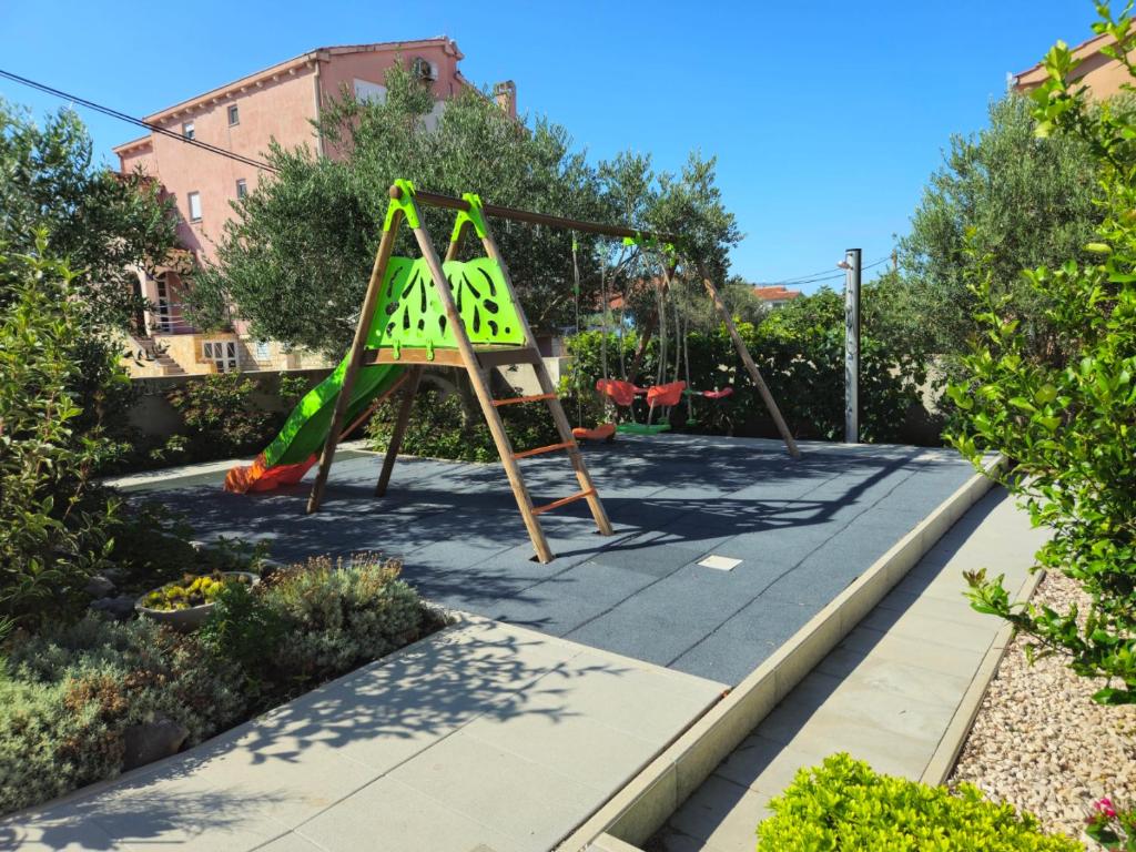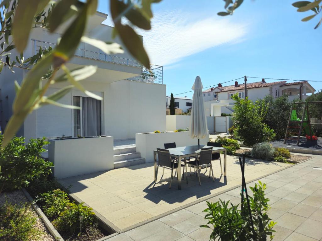 Zadar – Vrsi, prodaje se samostojeća kuća katnica od 221 m2 stambene površine i 525 m2 okućnice izgrađena 2020 godine na zemljištu od 669 m2, kompletno namještena i opremljena. Sastoji se od prizemlja i kata, tri odvojena apartmana. Prizemlje: – apartman 1: tri spavaće sobe, dnevni boravak + kuhinja + blagovaona, hodnik, 3 kupaonice, 1 toalet, praone, smočnice i terase. Kat: – apartman 2: jedna spavaća soba za 2 osobe, 1 manja soba za 1 osobu, dnevni boravak + kuhinja + blagovaona, kupaonica i terasa. – apartman 3: jedna spavaća soba, dnevni boravak + kuhinja + blagovaona, kupaonica i terasa. SA KUĆE SE PRUŽA POGLED NA MORE!!! Nalazi se na odličnoj lokaciji 210 udaljena od mora i plaže, blizina restorana, kafića, trgovine te svih ostalih sadržaja potrebnih za ugodan i miran život i odmor. Posjeduje pet parkirnih mjesta, uređenu okućnicu i dječje igralište. U dvorištu je postavljeno navodnjavanje (tajmer, aplikacija za upravljanje na mobitelu) te je postavljena kamera, (Xiaomi Solar Outdoor Camera BW400 Pro Set, pohrana SD kartica , aplikacija na mobitelu. Grijanje na drva i klimatizacija u svakoj sobi. Kuća je uhodana u turistički smještaj sa viskom ocjenama. Dokumentacija uredna.