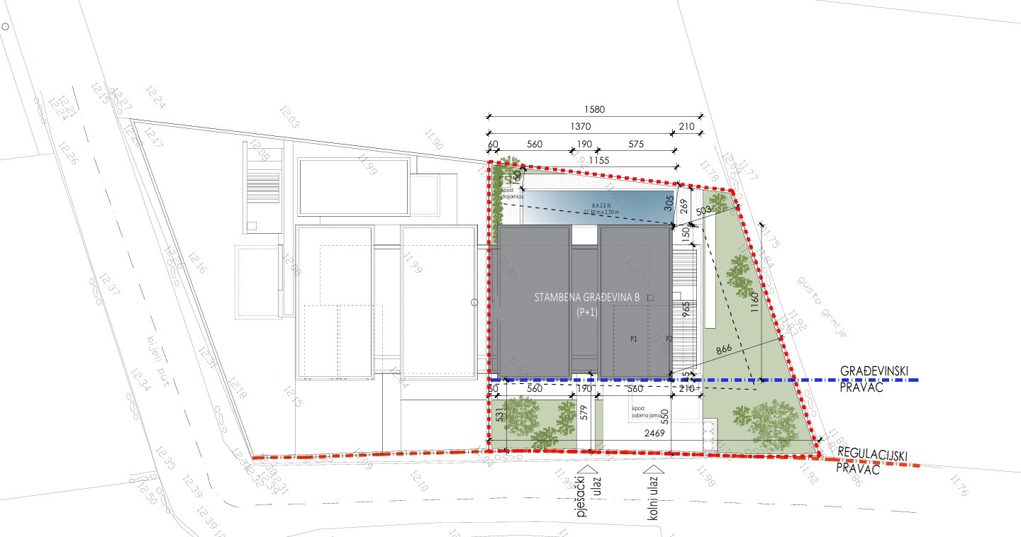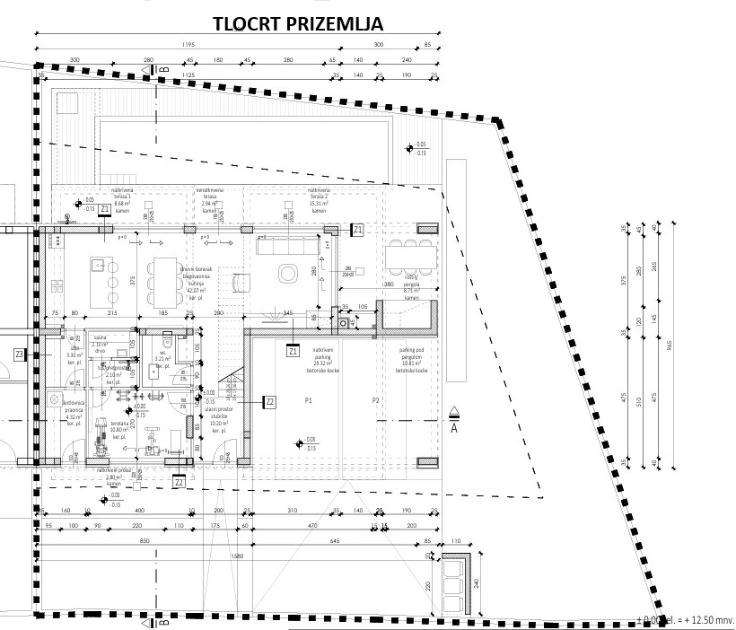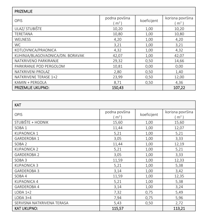 Zadar – Zaton, prodaje se dvojna kuća katnica od 220,43 m2 stambene površine i 238 m2 okućnice izgrađena 2025 godine na zemljištu od 440 m2. Kvalitetna gradna ciglenim termo blokom, stiropor fasada debljine 15 cm, prozori aluminijski s električnim roletama, troslojnim staklom i komarnicima, protuprovalna ulazna vrata, podovi parket i pločice, grijanje i hlađenje dizalica topline, kroz cijelu kuću je provedeno podno grijanje preko dizalice topline, kuća ima dimnjak i kamin, itd… Sastoji se od prizemlja i kata. Prizemlje: dnevni boravak + kuhinja + blagovaona, predsoblje, teretana, sauna, kotlovnica, wc, kupaonica i terasa. Kat: četiri spavaće sobe, četiri kupaonice i četiri lođe. Nalazi se na mirnoj lokaciji 1200 m udaljeno od plaže, 1300 m od kampa, blizina igrališta, trgovine, restorana te svih ostalih sadržaja potrebnih za ugodan i miran odmor, život i kometcijalizaciju (turistički smještaj)! Posjeduje dva natrkivena parkirna mjesta, bazen od 28 m2 i pergolu sa ljetnom kuhinjom. Dokumentacija uredna.